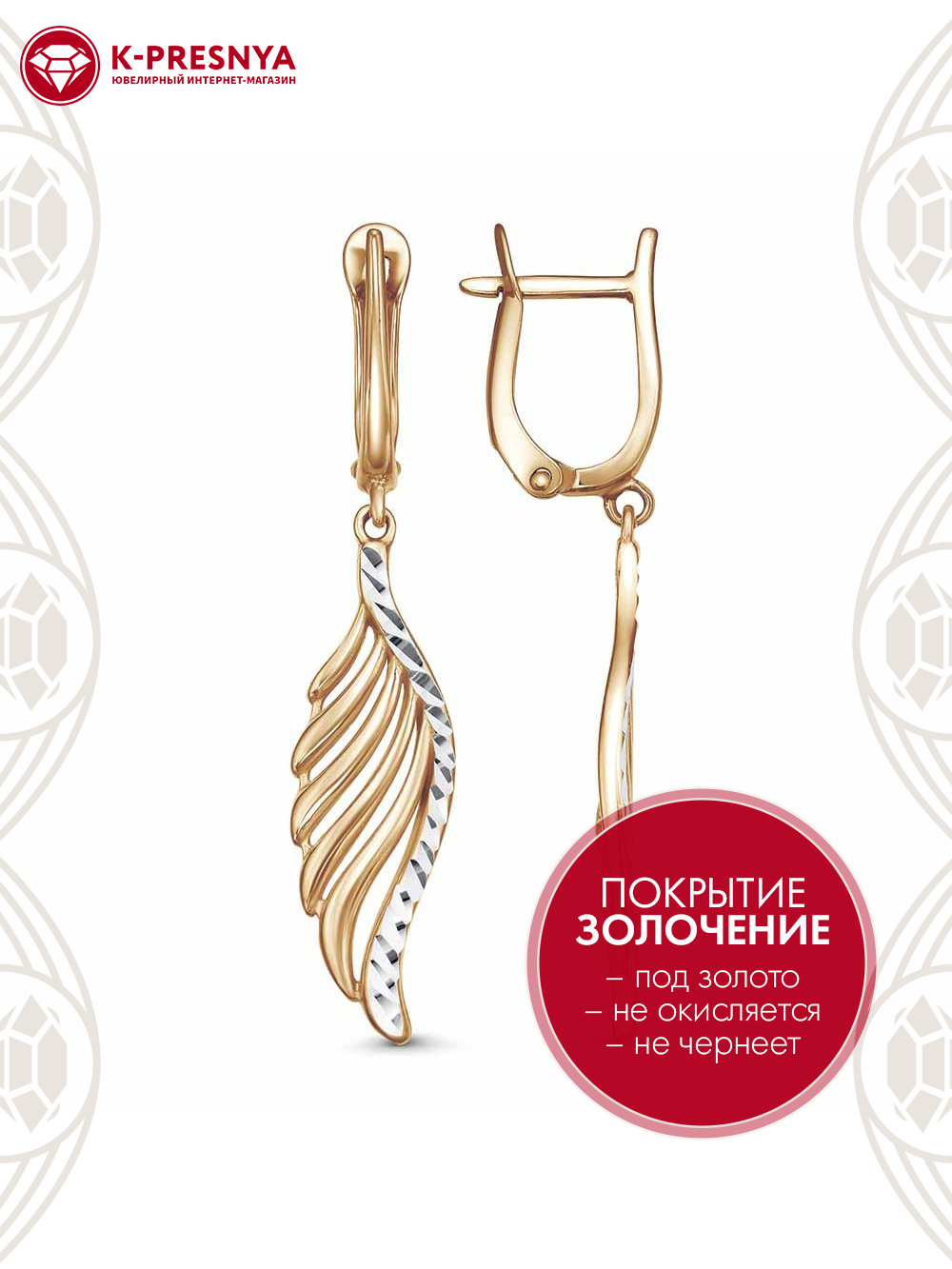 Серьги бижутерия, покрытие - золочение, отделка - алмазная грань, без вставок
