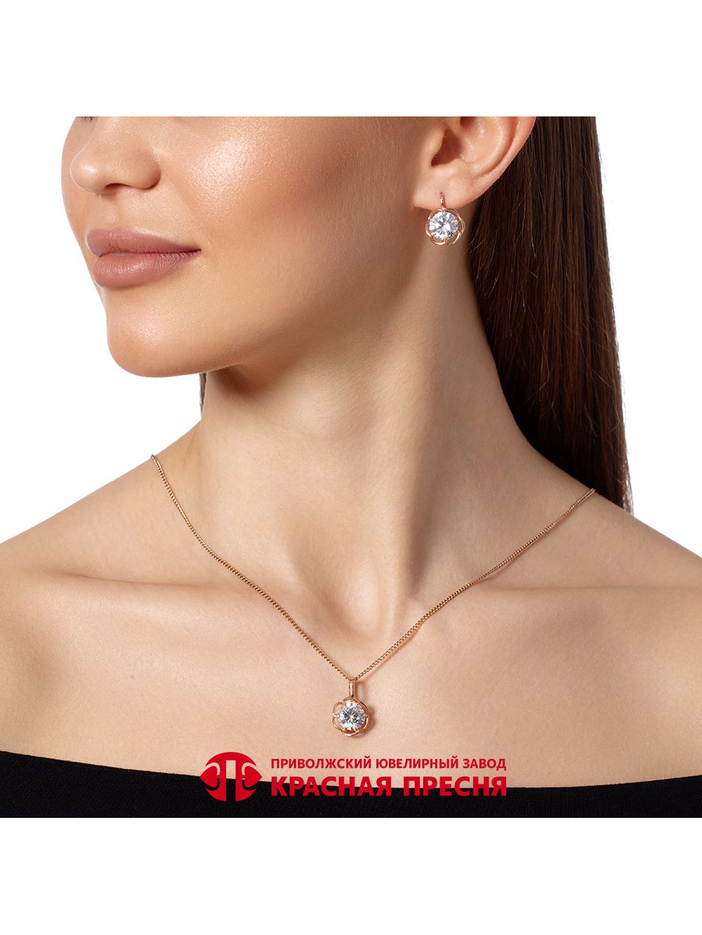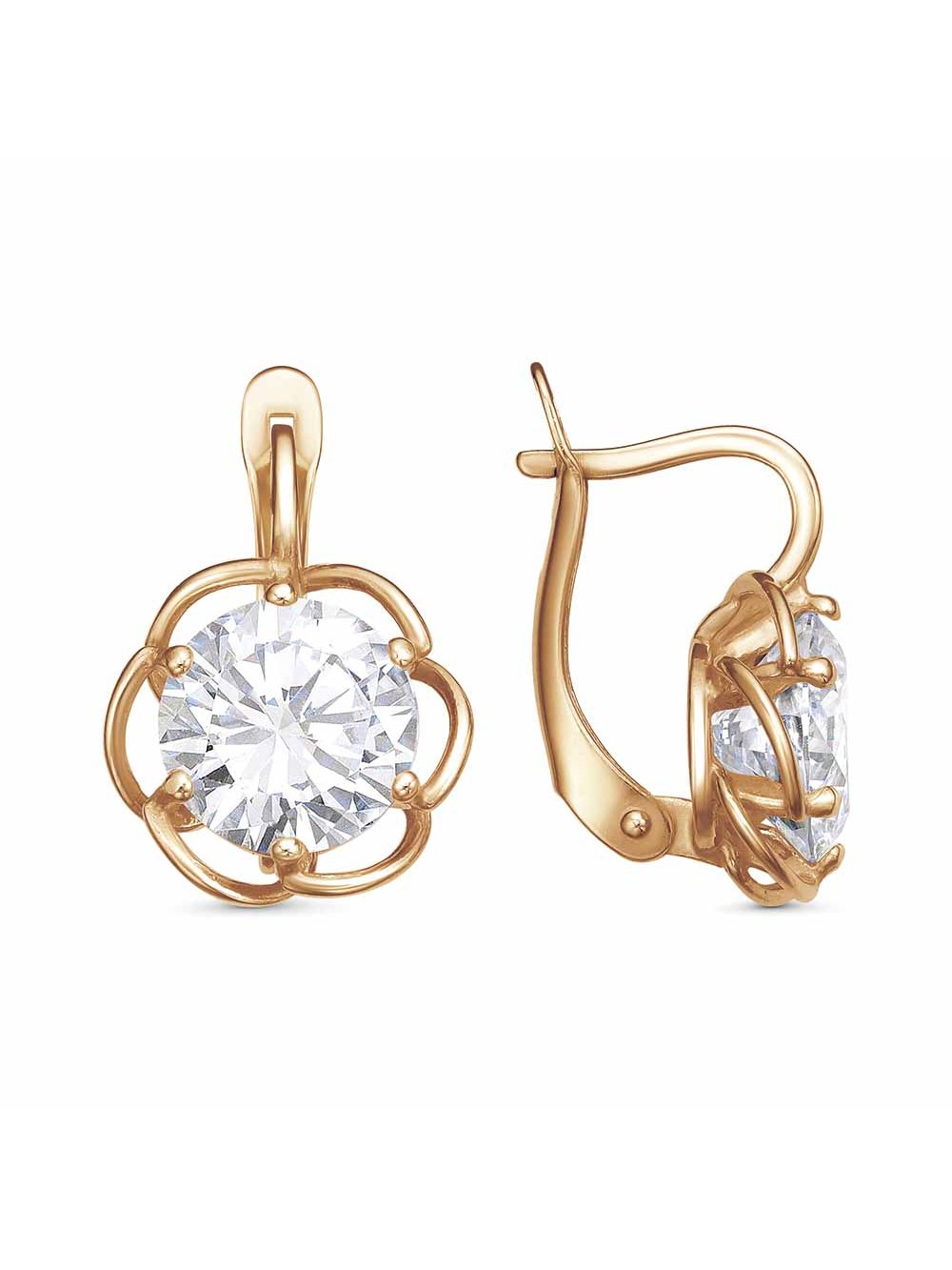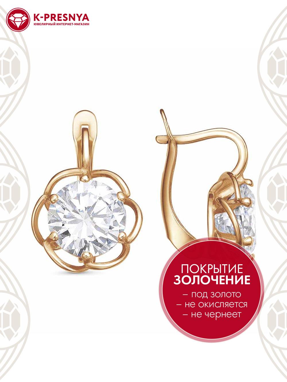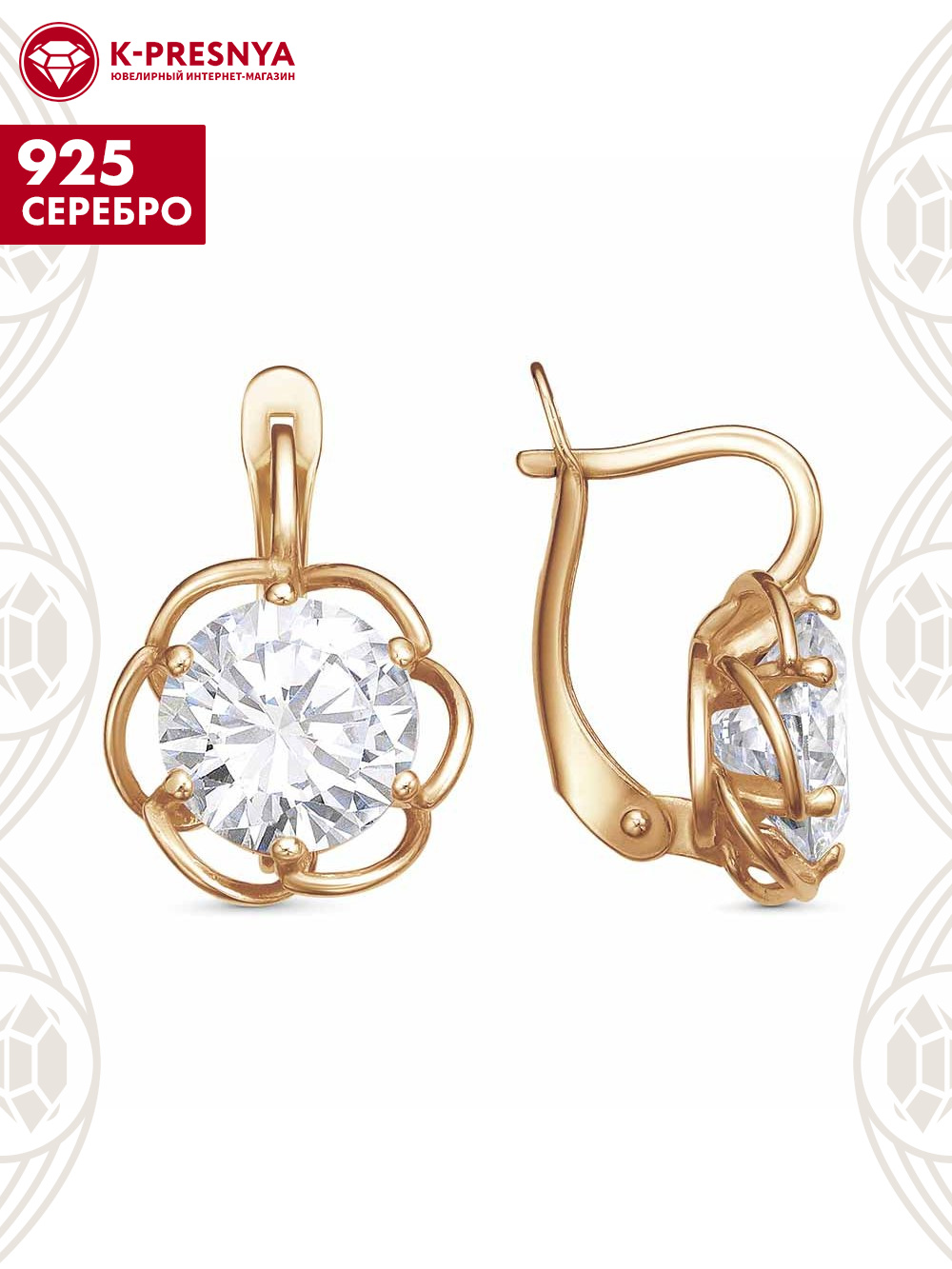 Серьги серебро 925 пробы, покрытие - золочение, вставка - фианит (недрагоценный камень)