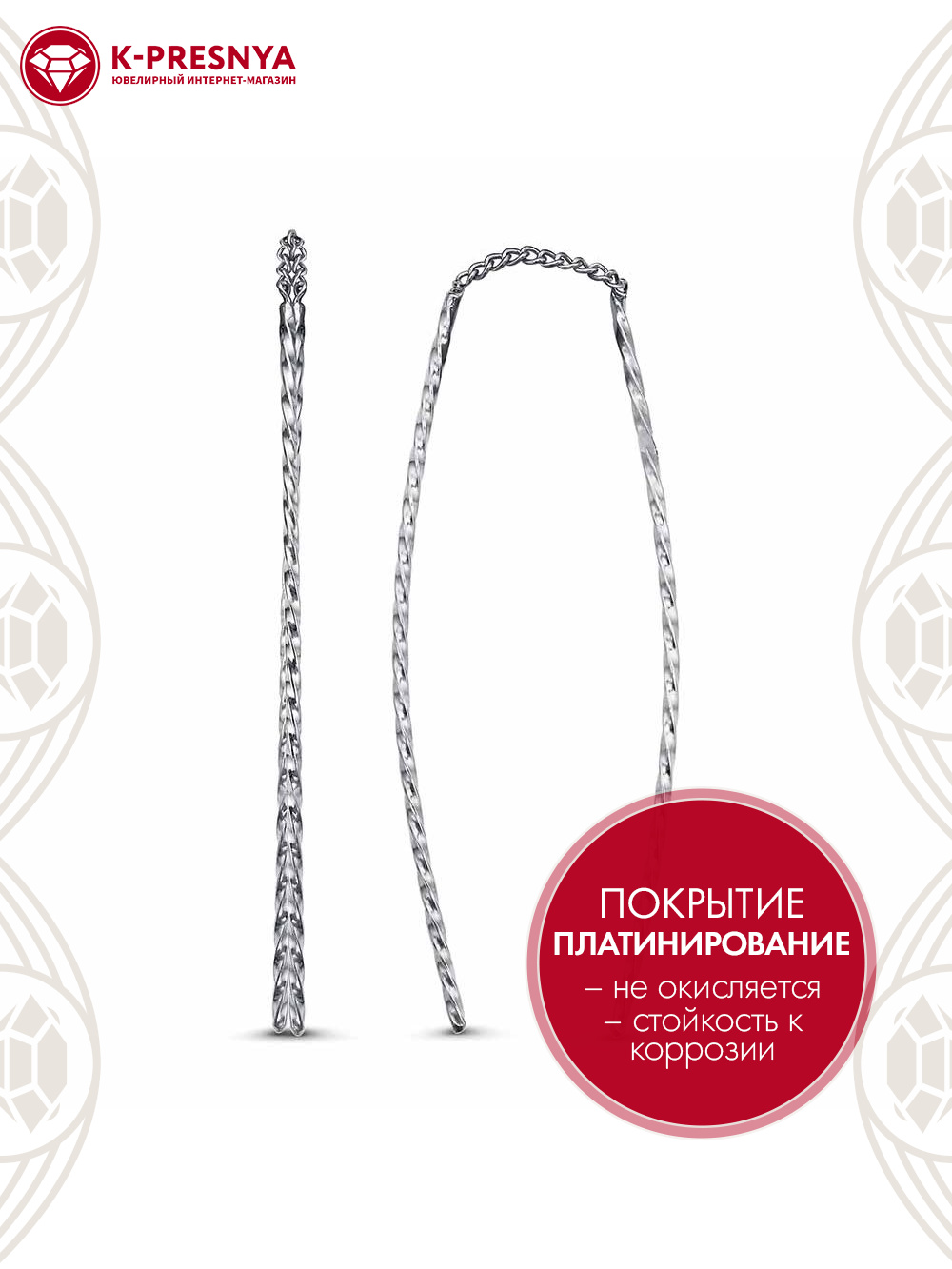 Серьги бижутерия, покрытие - платинирование, без вставок