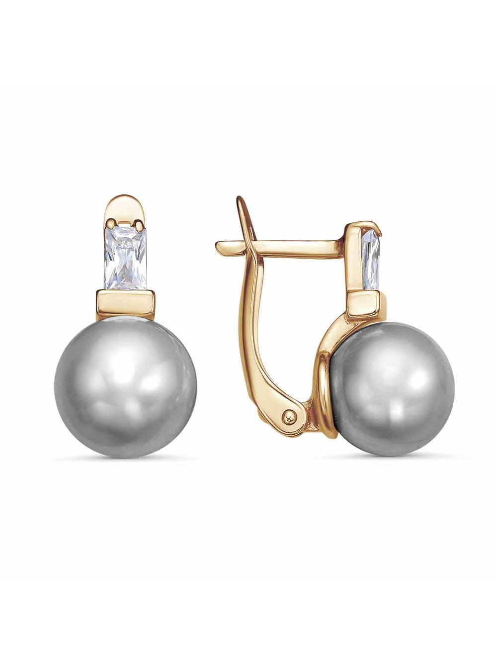 Серьги бижутерия, покрытие - золочение, вставка - имитация жемчуга, фианит (недрагоценный камень)