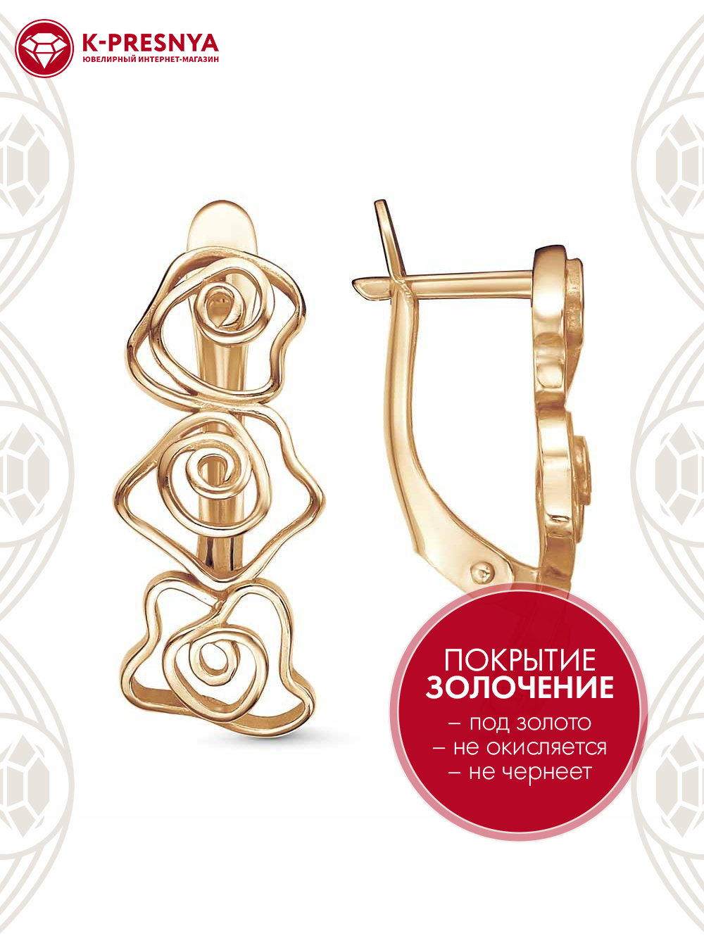 Серьги бижутерия, покрытие - золочение, без вставок