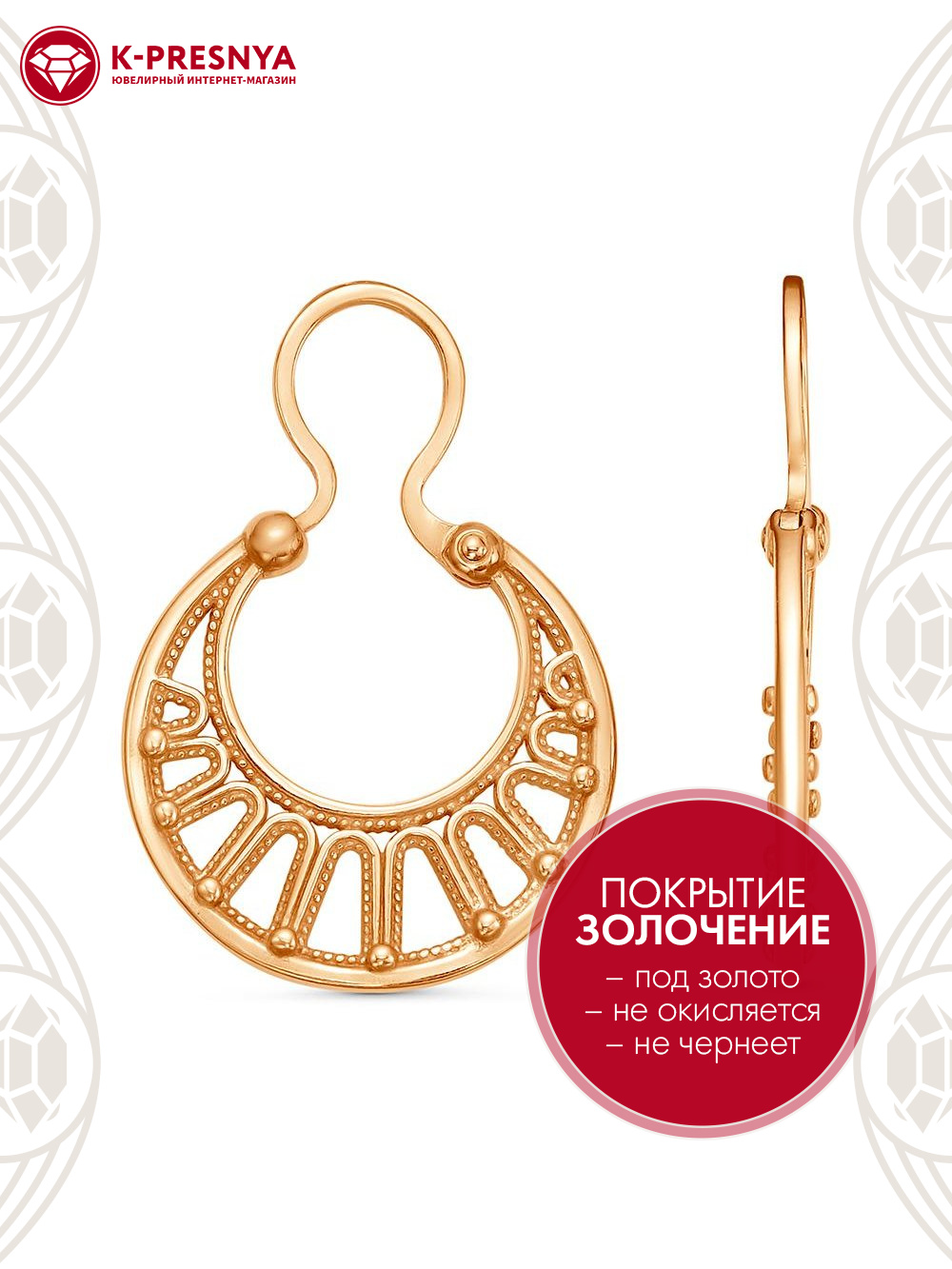 Серьги бижутерия, покрытие - золочение, без вставок