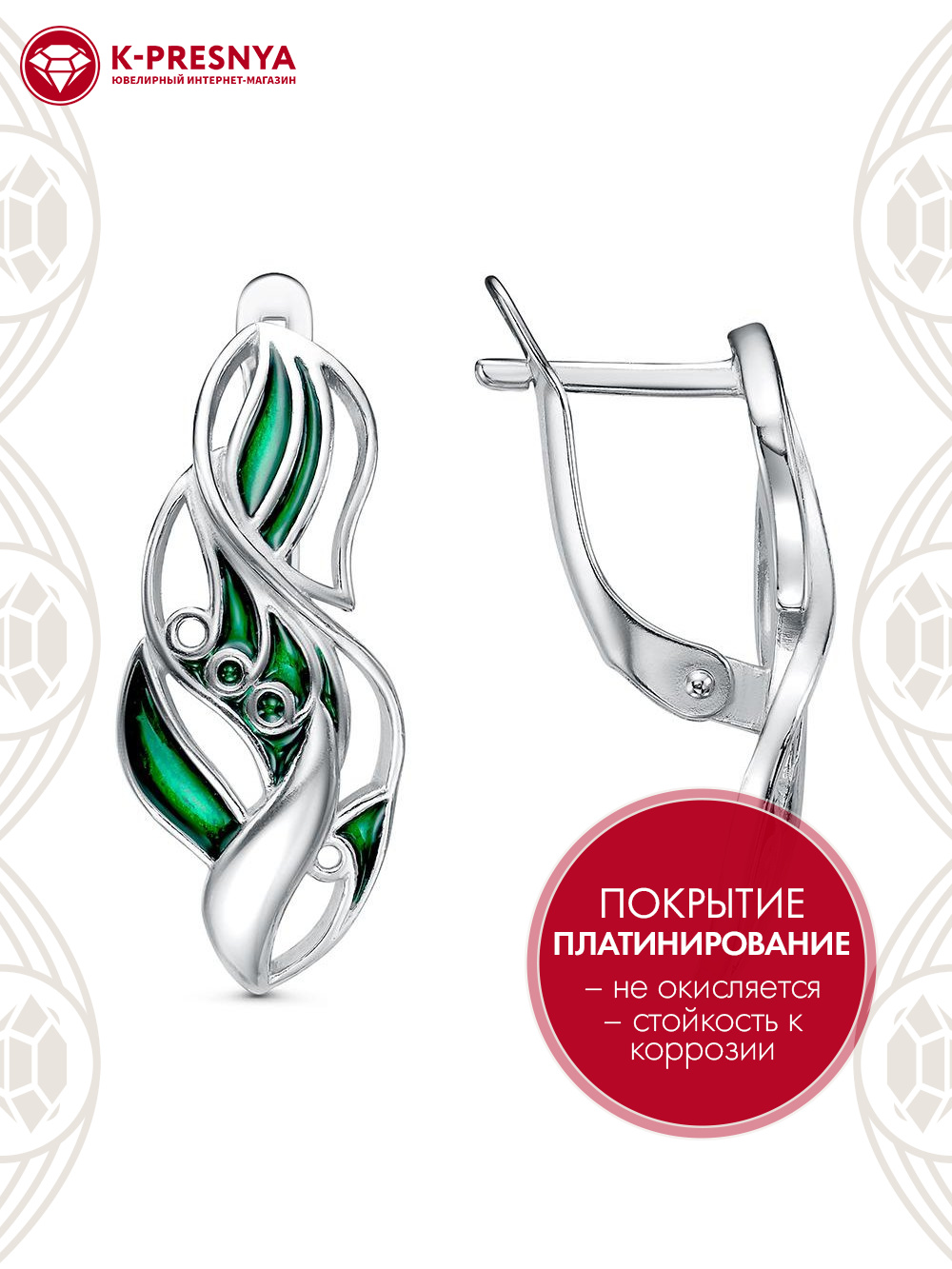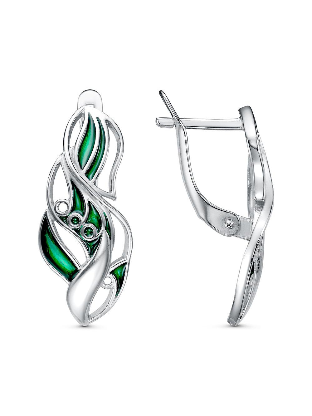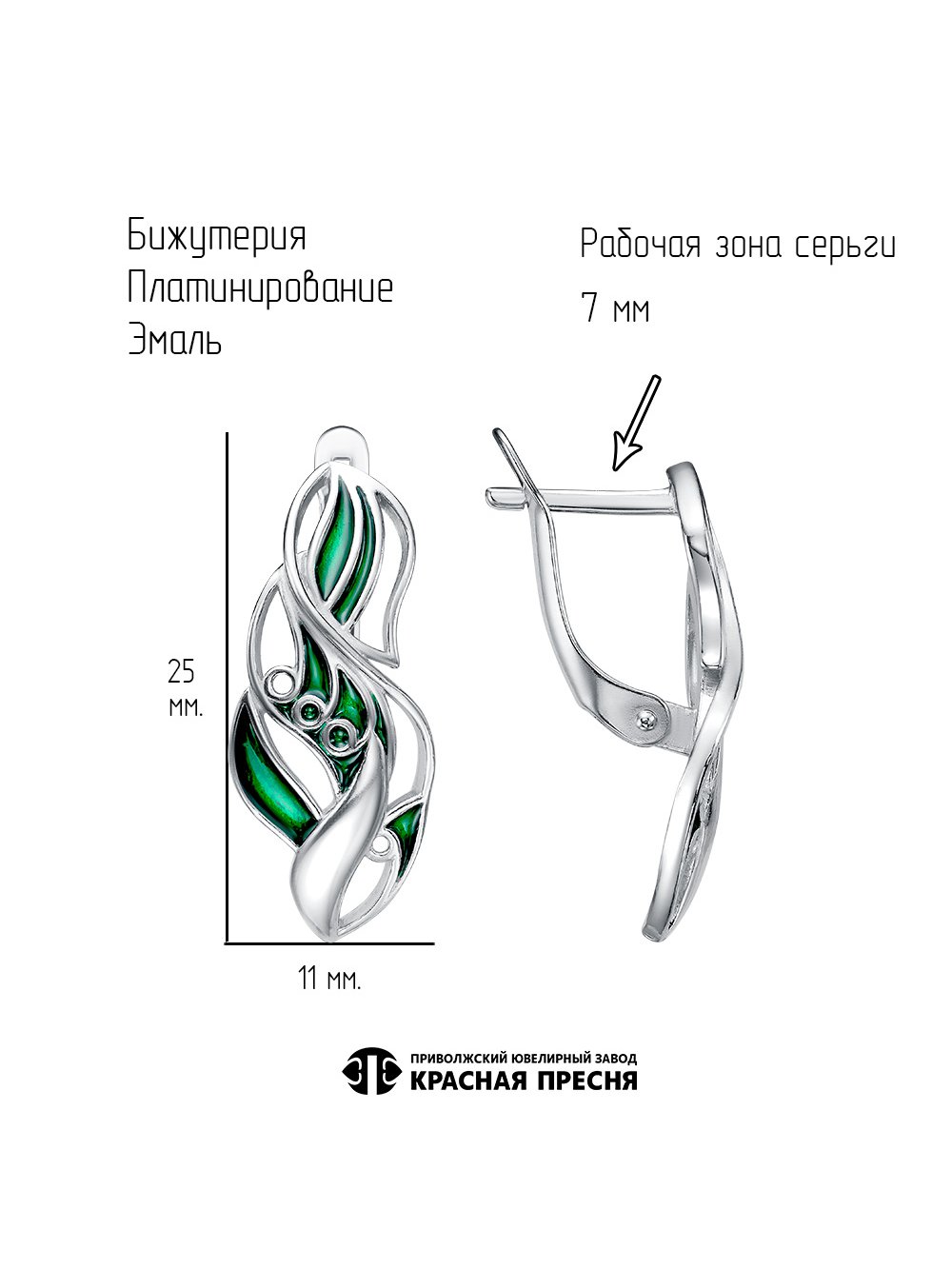 Серьги бижутерия, покрытие - платинирование, отделка - эмаль, без вставок