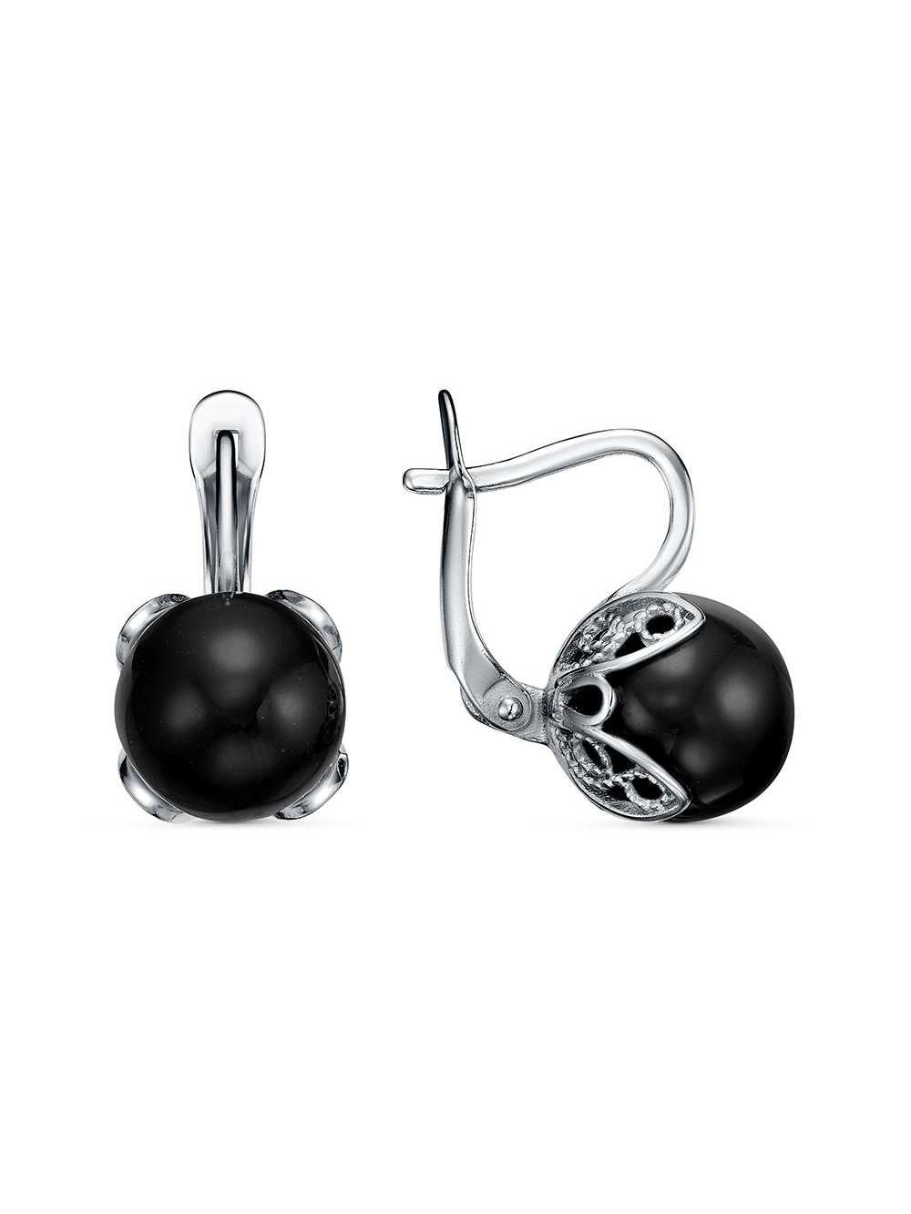 Серьги бижутерия, покрытие - серебрение с оксидированием, вставка - имитация жемчуга