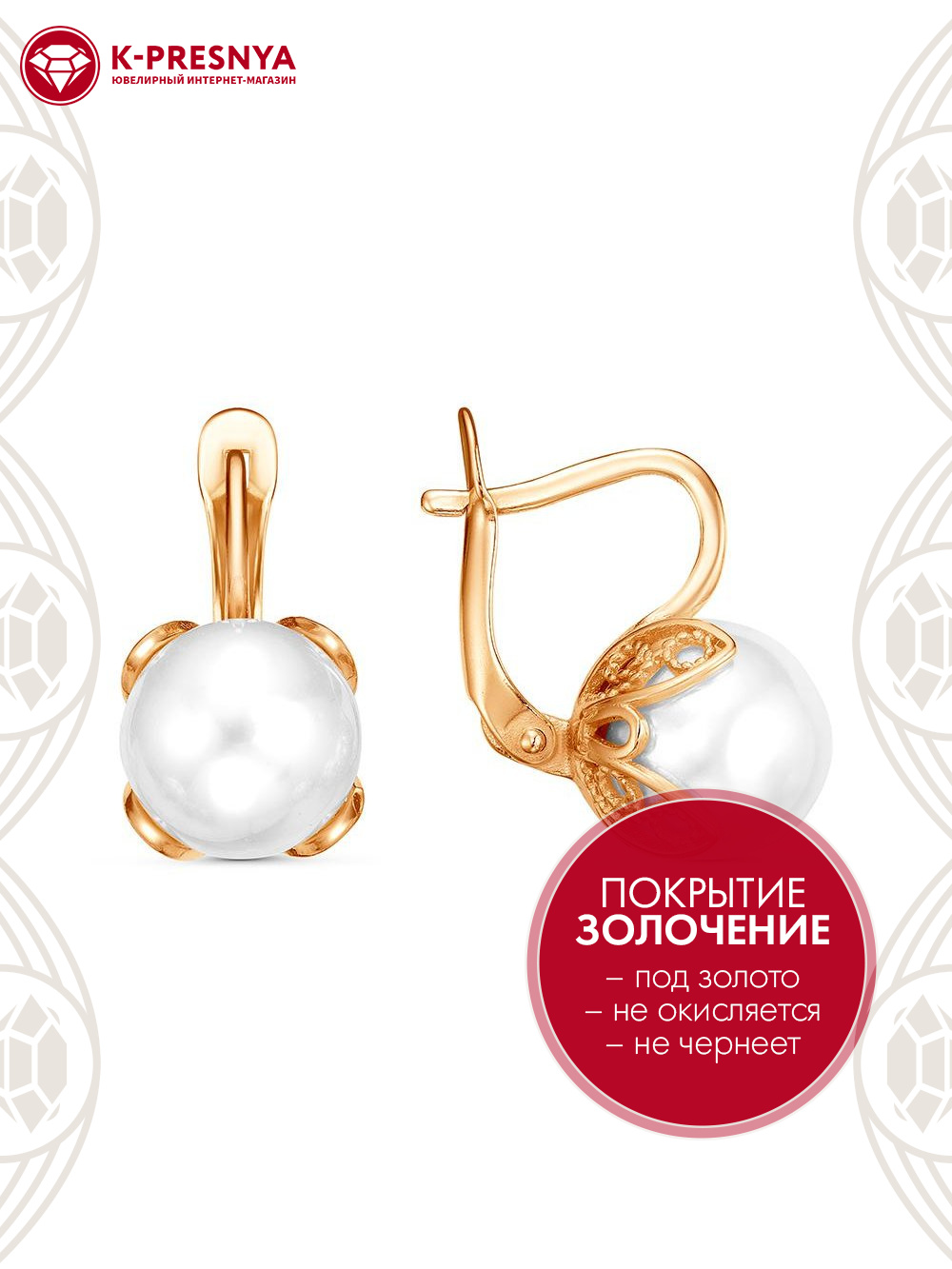 Серьги бижутерия, покрытие - золочение, вставка - имитация жемчуга