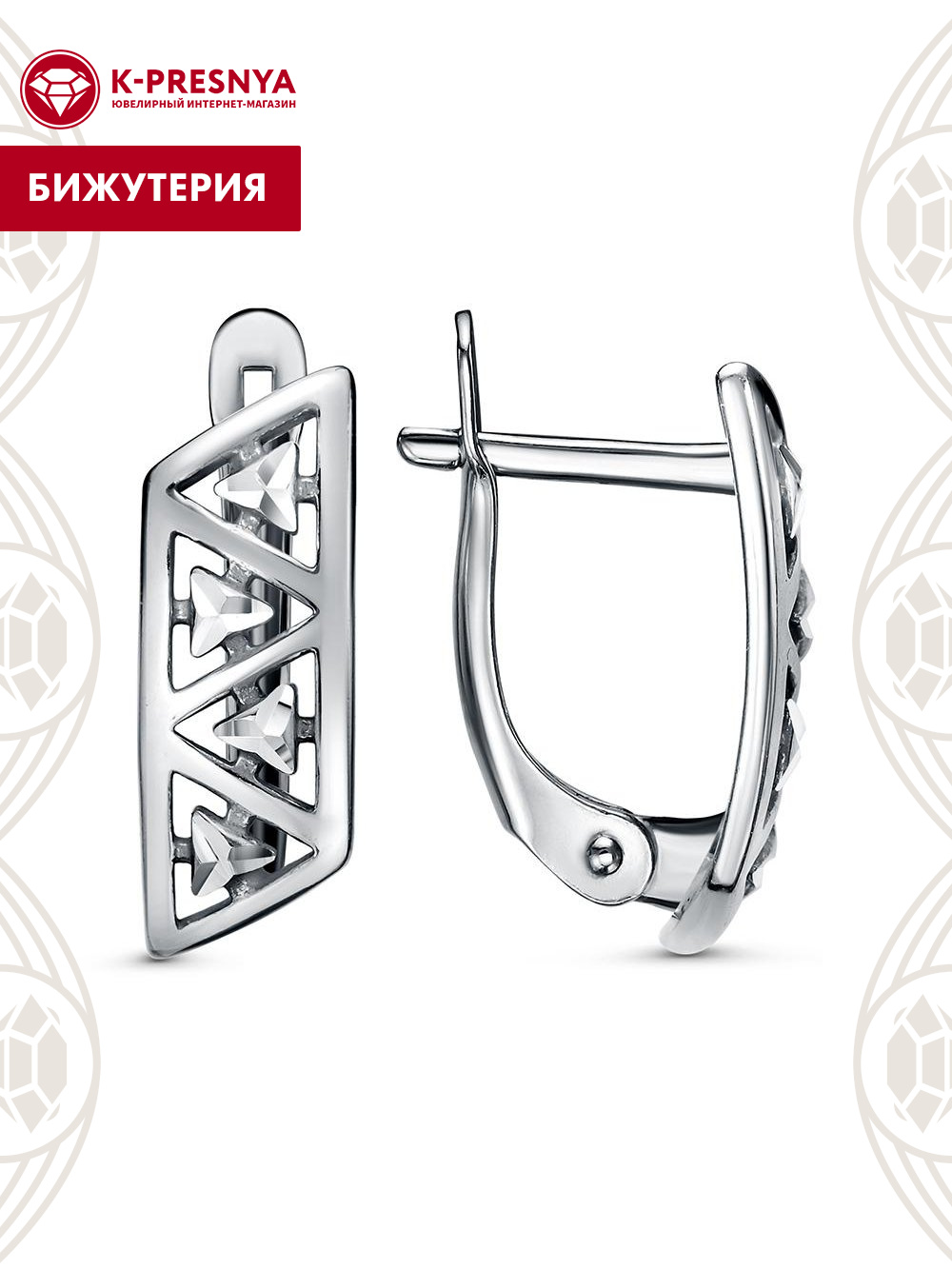 Серьги бижутерия, покрытие - серебрение с оксидированием, отделка - алмазная грань, без вставок