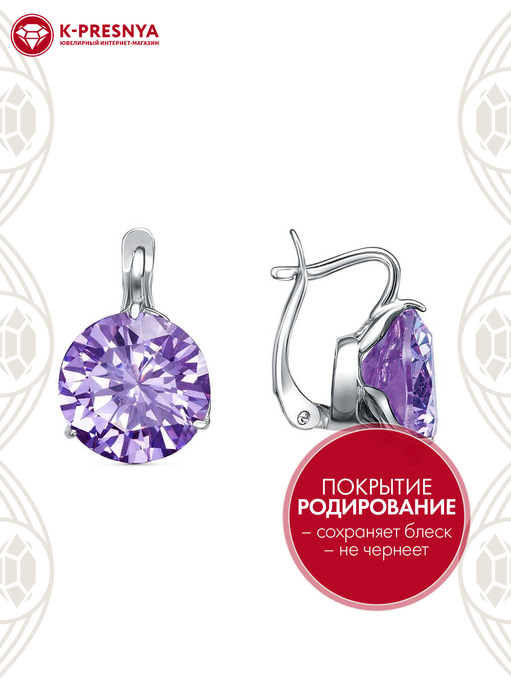 Серьги серебро 925 пробы, покрытие - родирование, вставка - фианит (недрагоценный камень)