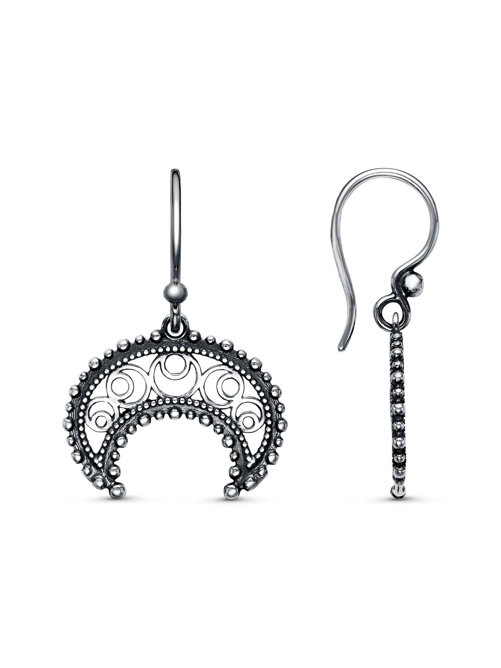 Серьги бижутерия, покрытие - серебрение с оксидированием, без вставок