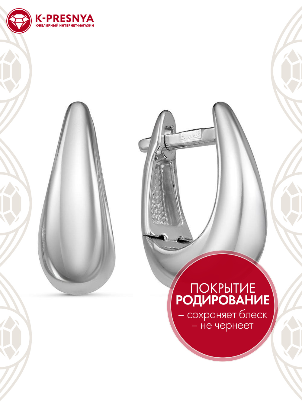 Серьги серебро 925 пробы, покрытие - родирование, без вставок