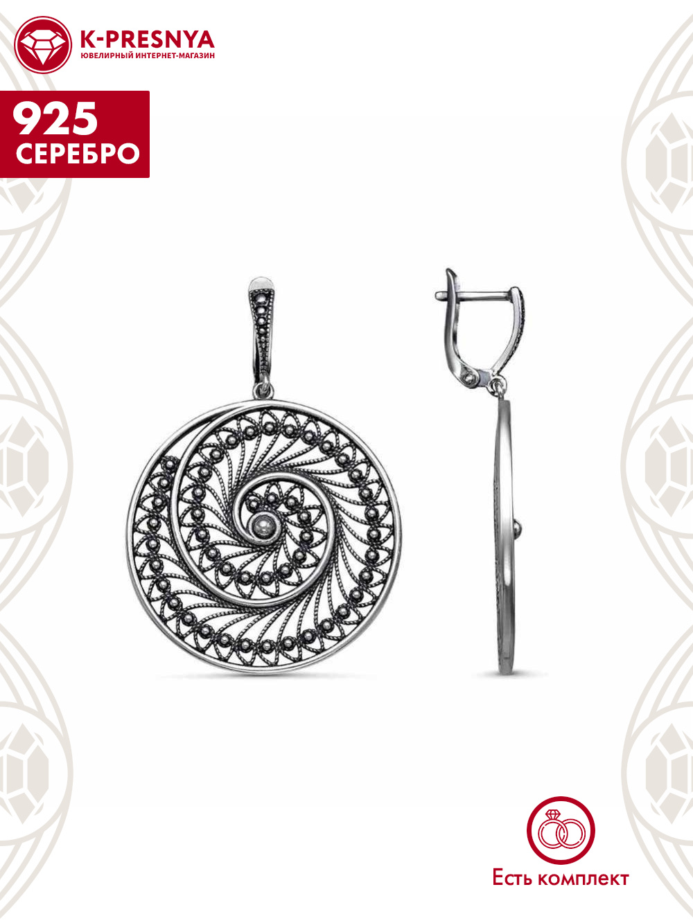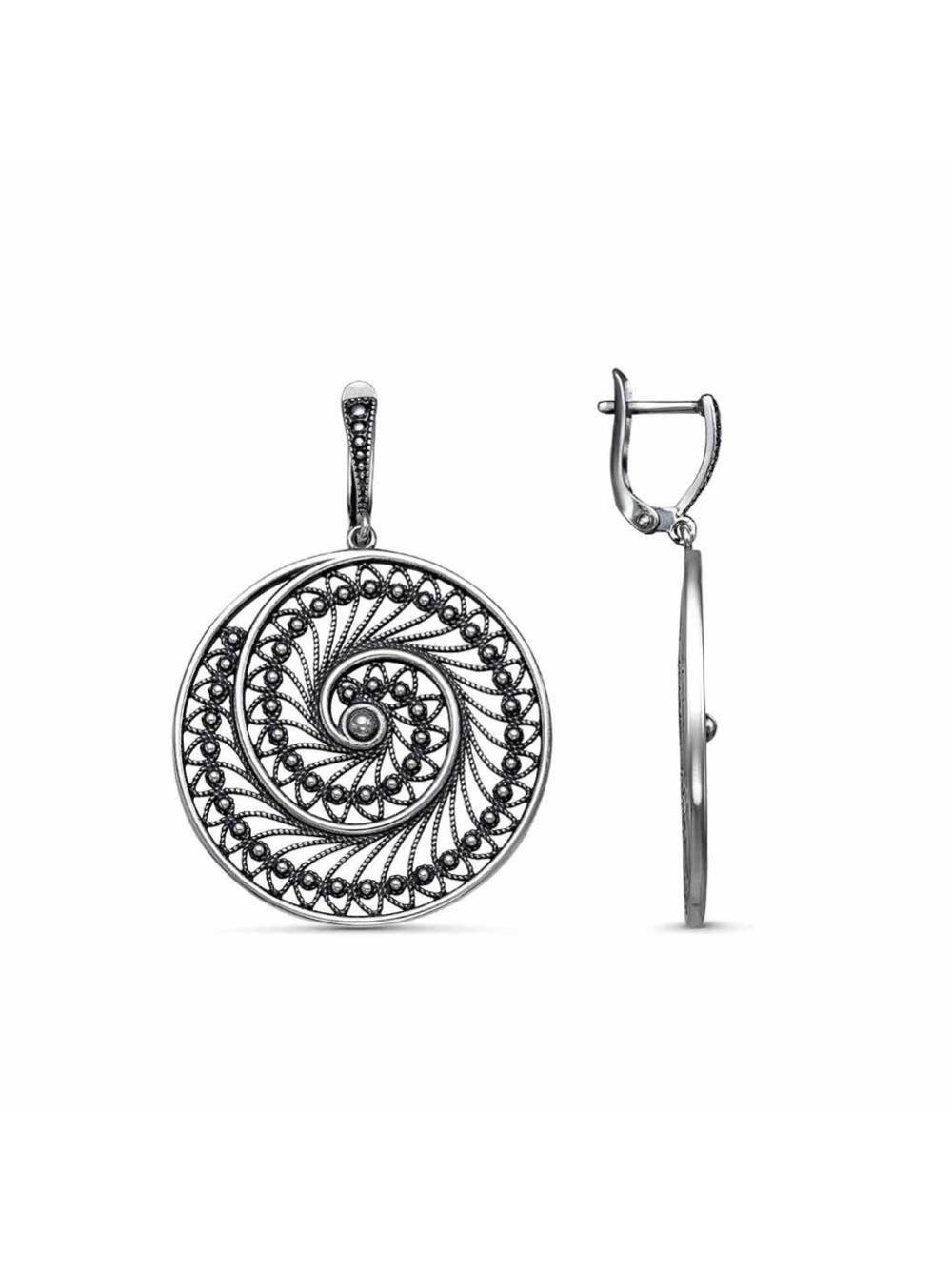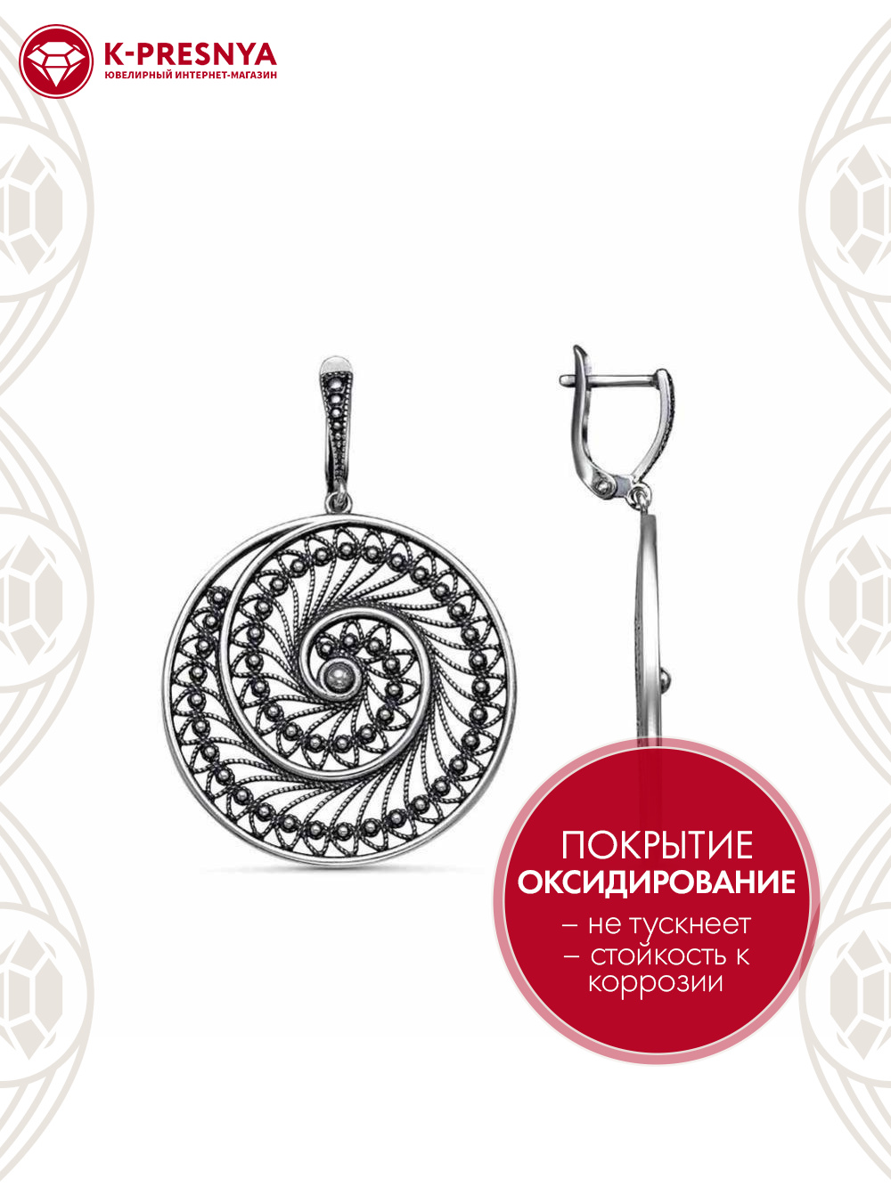Серьги серебро 925 пробы, покрытие - оксидирование, без вставок