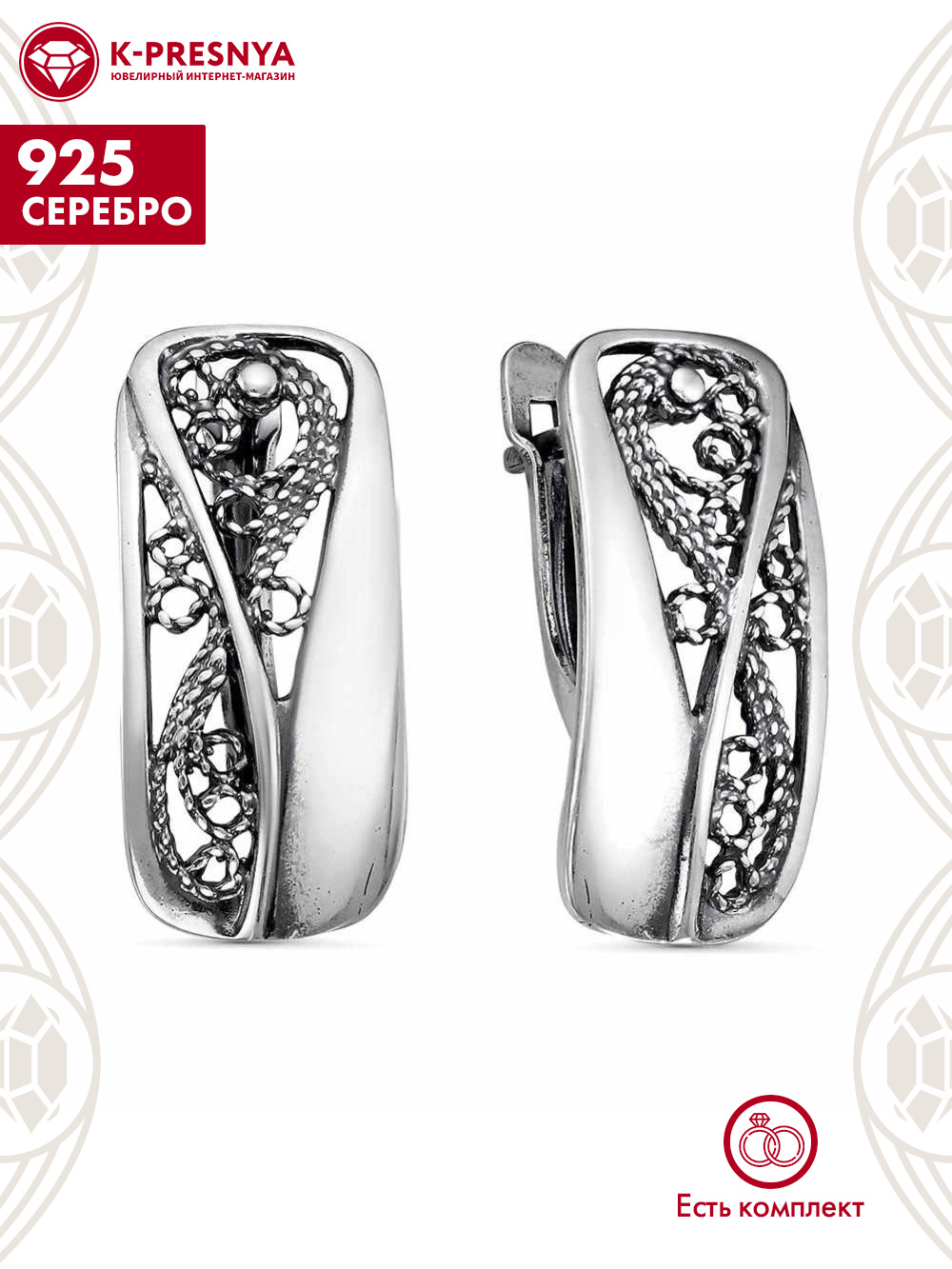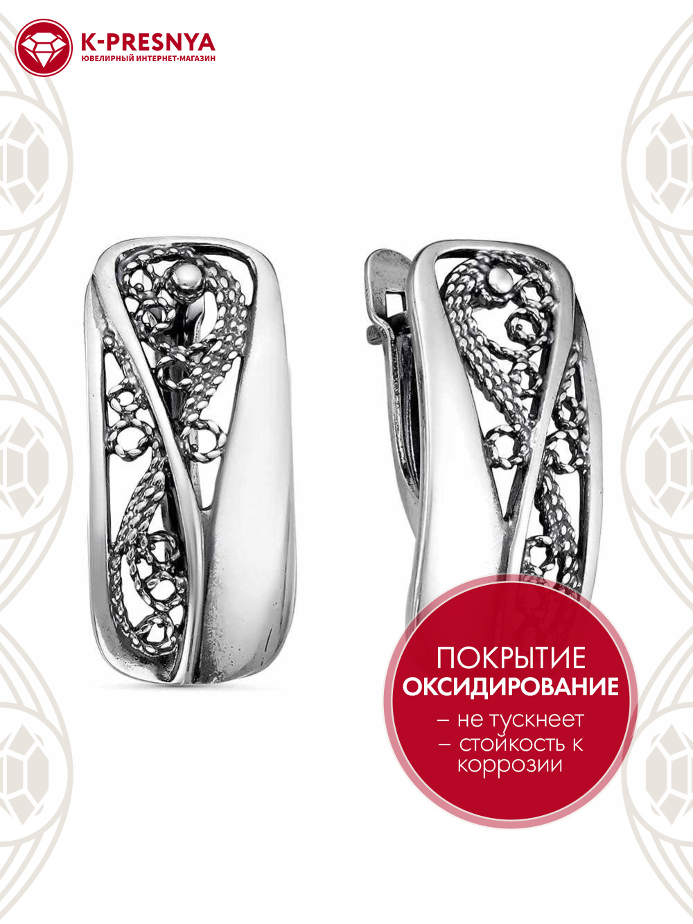 Серьги серебро 925 пробы, покрытие - оксидирование, без вставок
