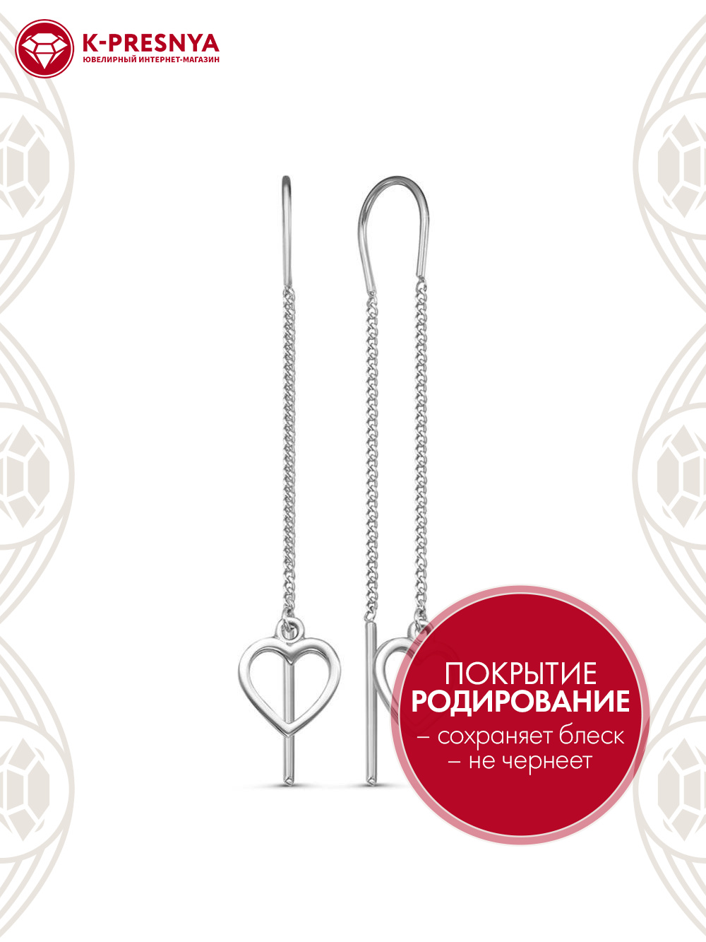 Серьги серебро 925 пробы, покрытие - родирование, без вставок