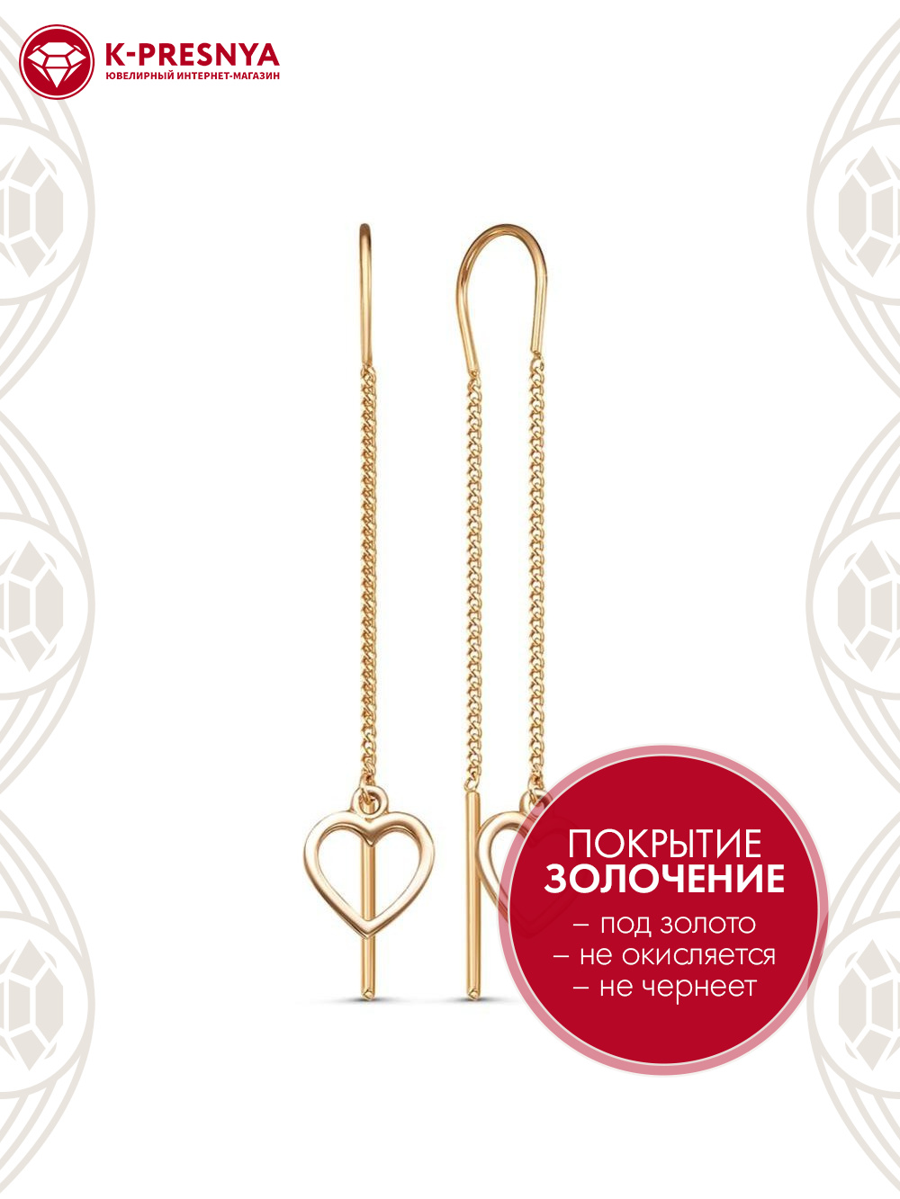 Серьги серебро 925 пробы, покрытие - золочение, без вставок