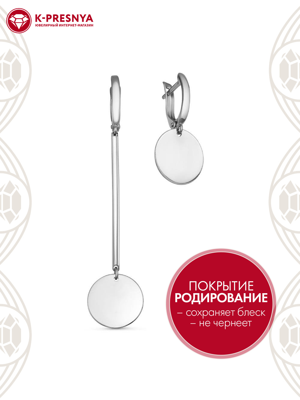 Серьги серебро 925 пробы, покрытие - родирование, без вставок