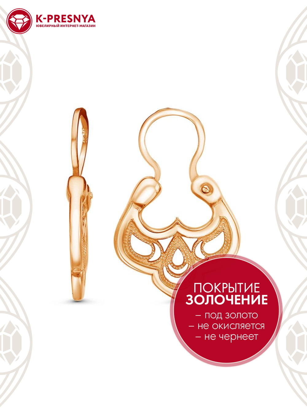 Серьги серебро 925 пробы, покрытие - золочение, без вставок