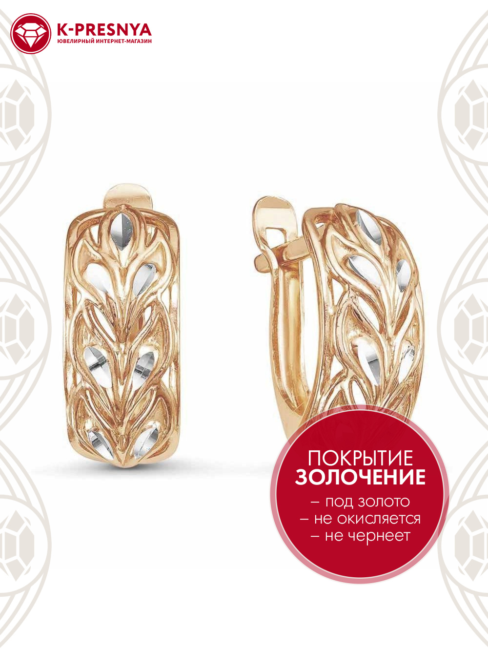 Серьги серебро 925 пробы, покрытие - золочение, отделка - алмазная грань, без вставок