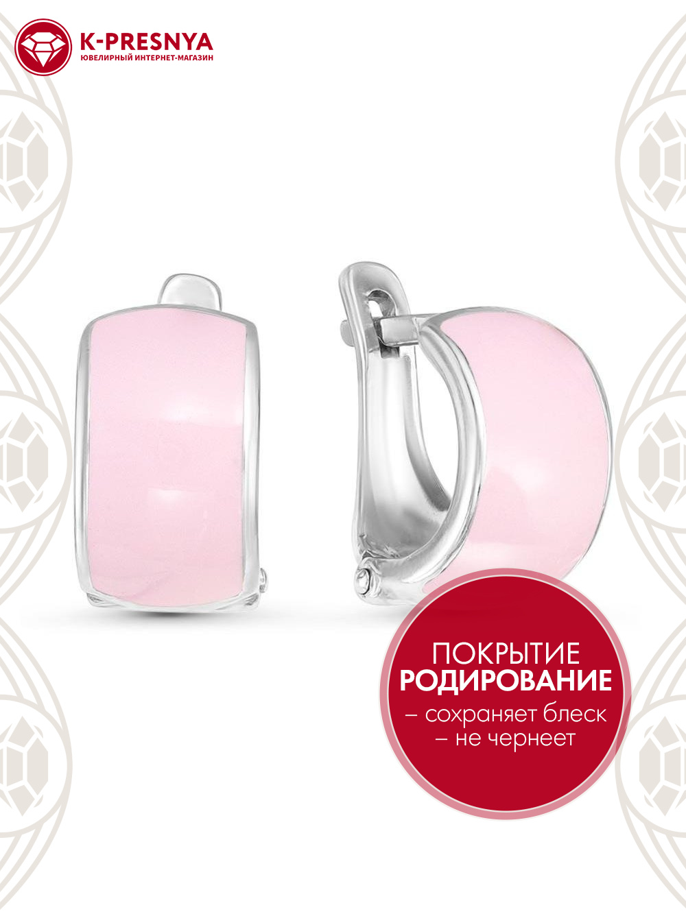 Серьги серебро 925 пробы, покрытие - родирование, отделка - эмаль, без вставок