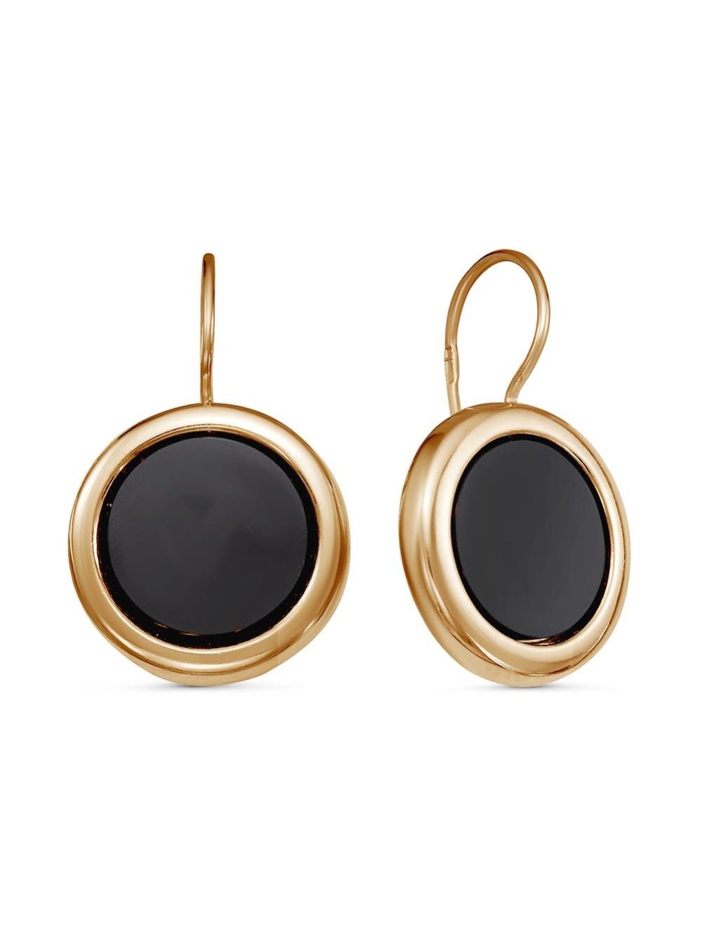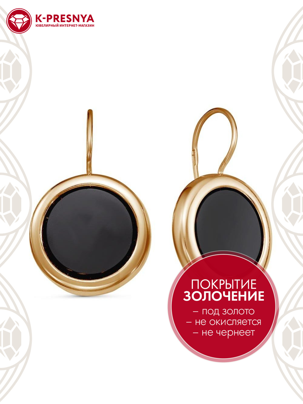 Серьги серебро 925 пробы, покрытие - золочение, вставка - искусственный агат черный