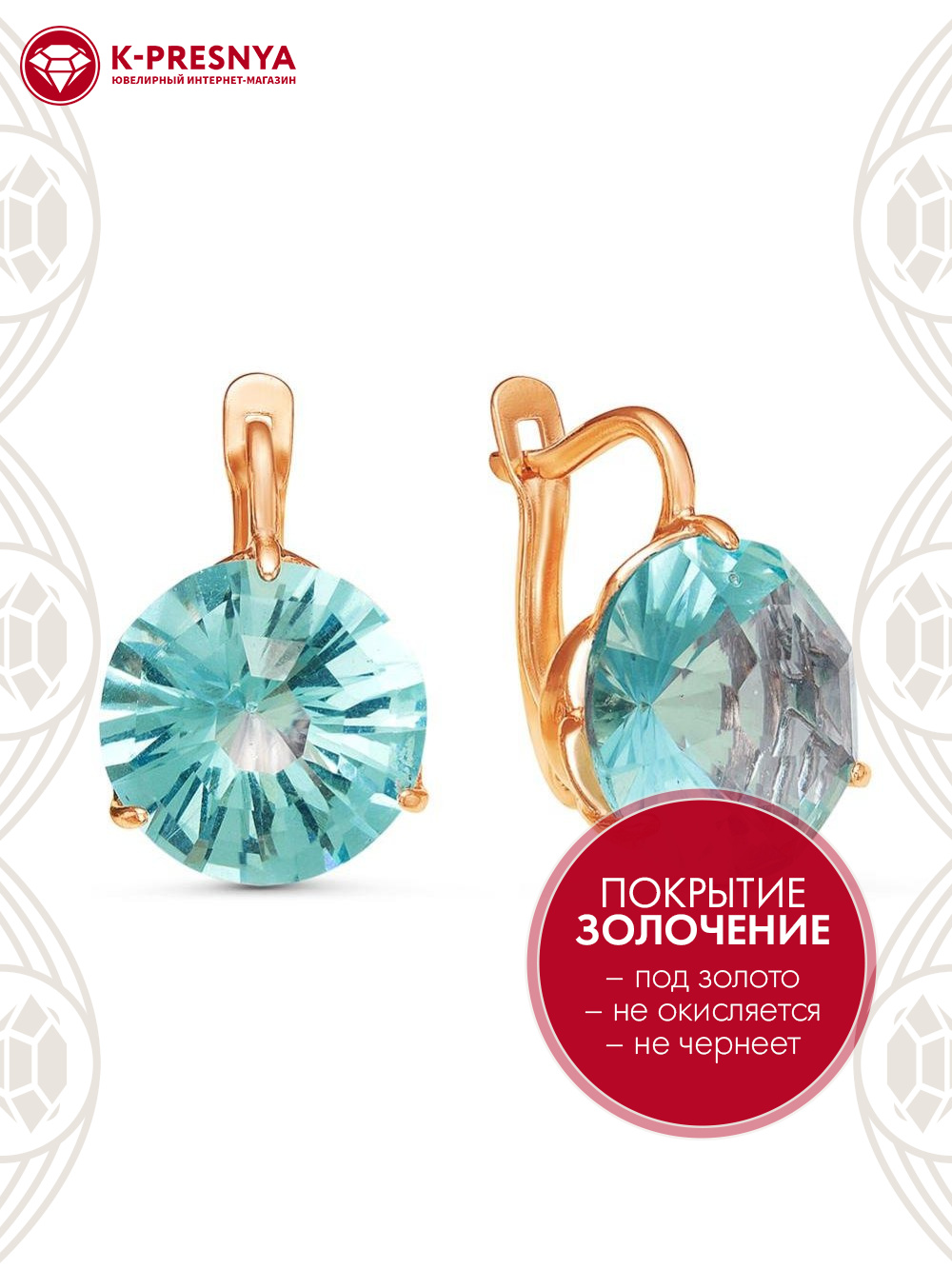 Серьги бижутерия, покрытие - золочение, вставка - стекло ювелирное собственной огранки
