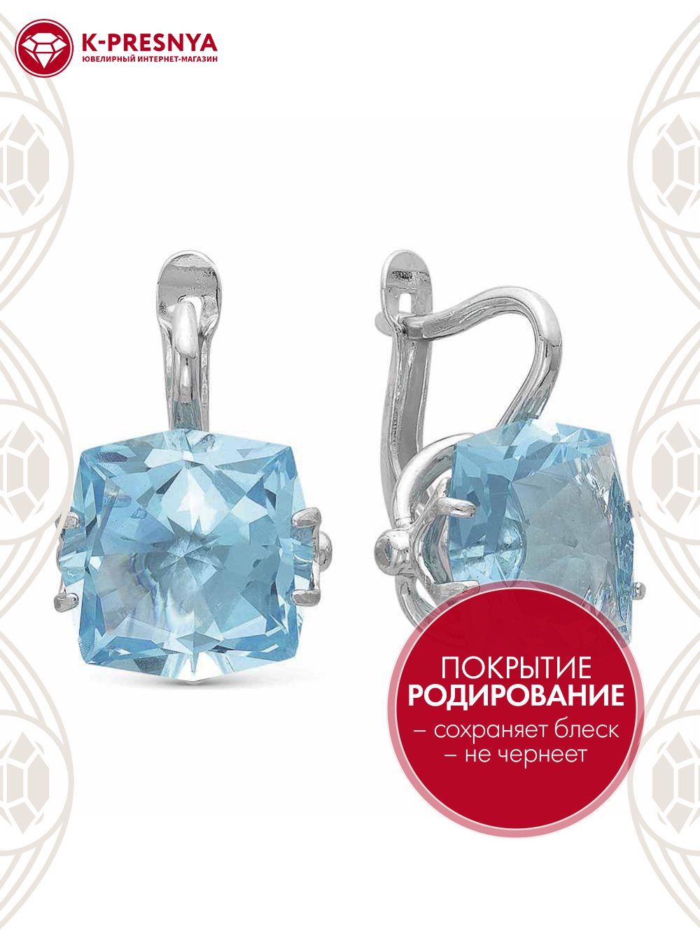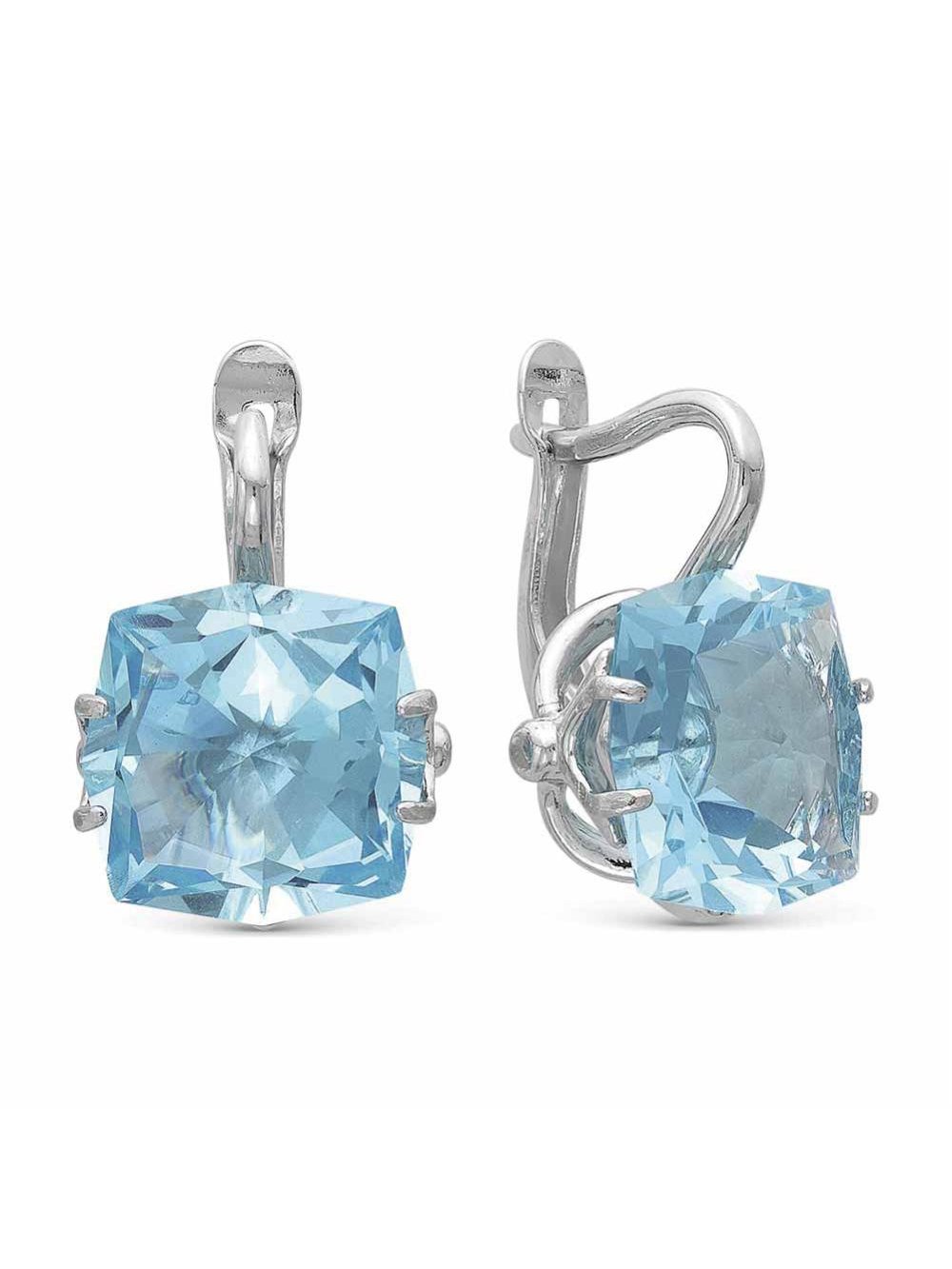Серьги серебро 925 пробы, покрытие - родирование, вставка - искусственный топаз голубой