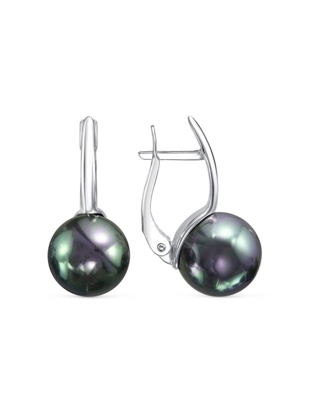 Серьги серебро 925 пробы, покрытие - родирование, вставка - имитация жемчуга