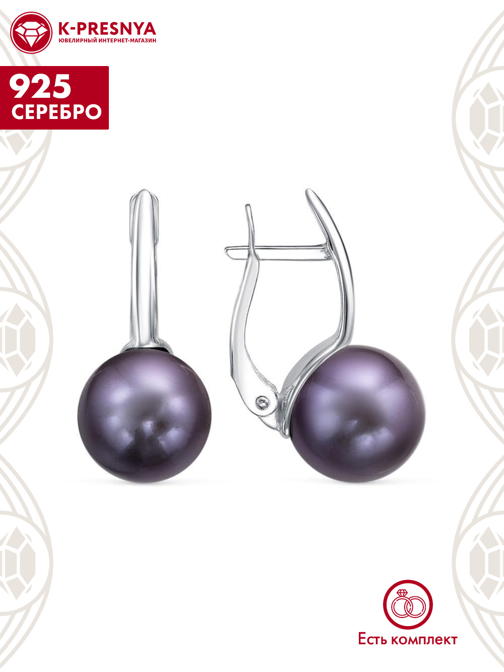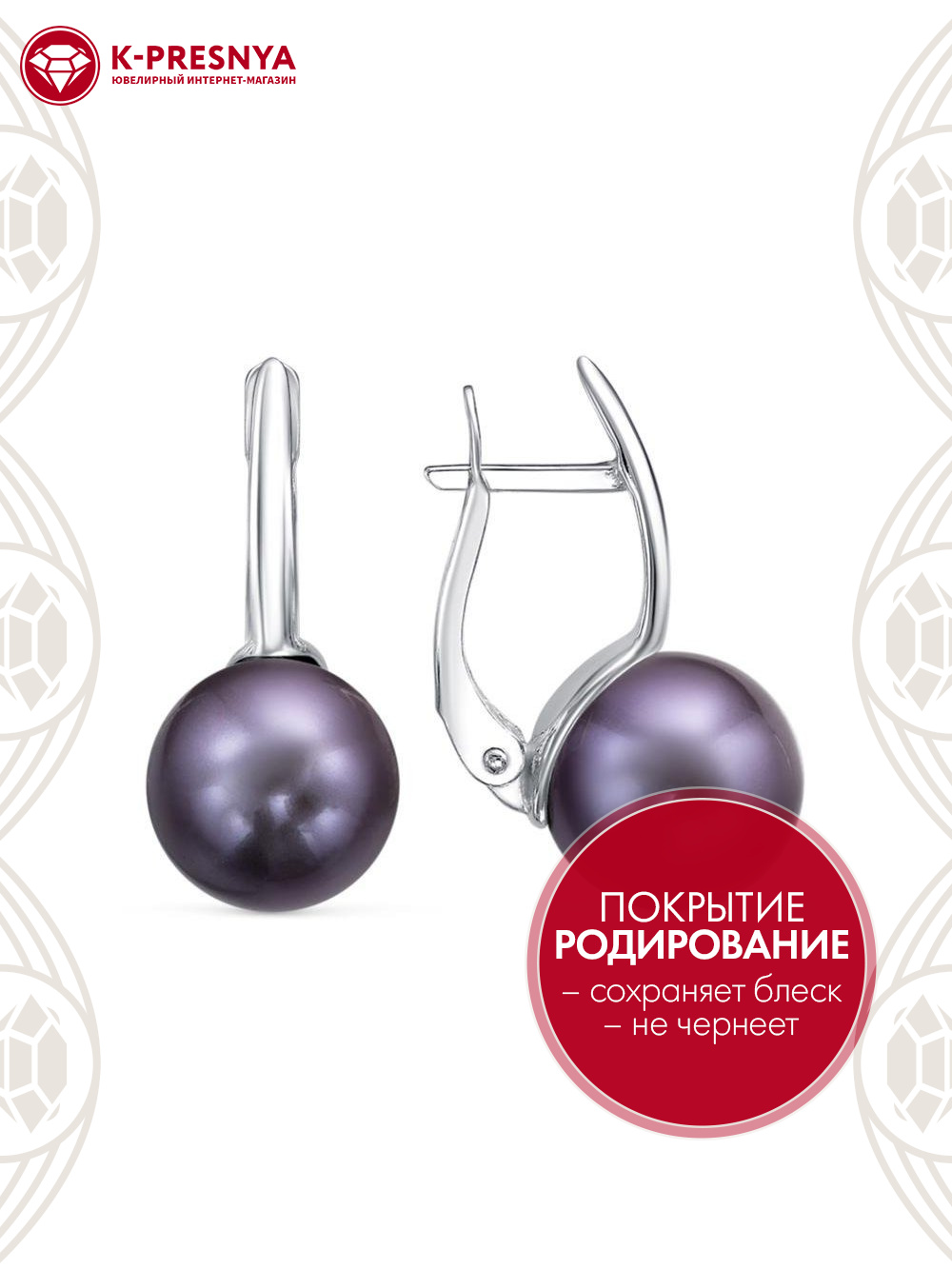 Серьги серебро 925 пробы, покрытие - родирование, вставка - имитация жемчуга