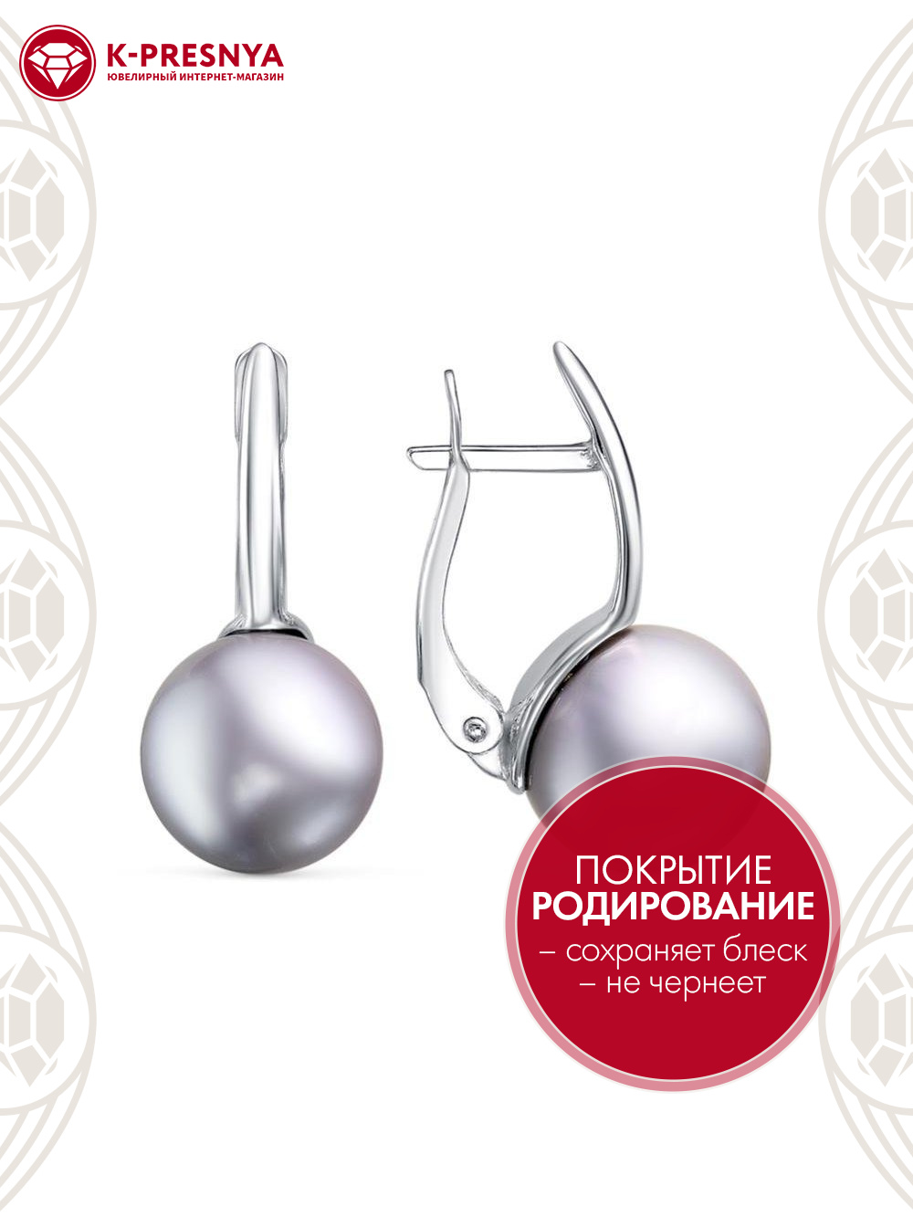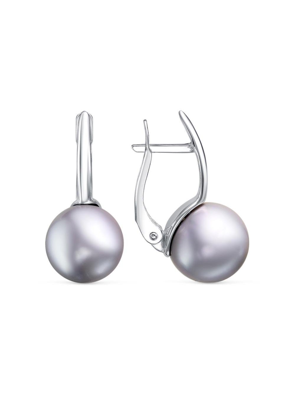 Серьги серебро 925 пробы, покрытие - родирование, вставка - имитация жемчуга