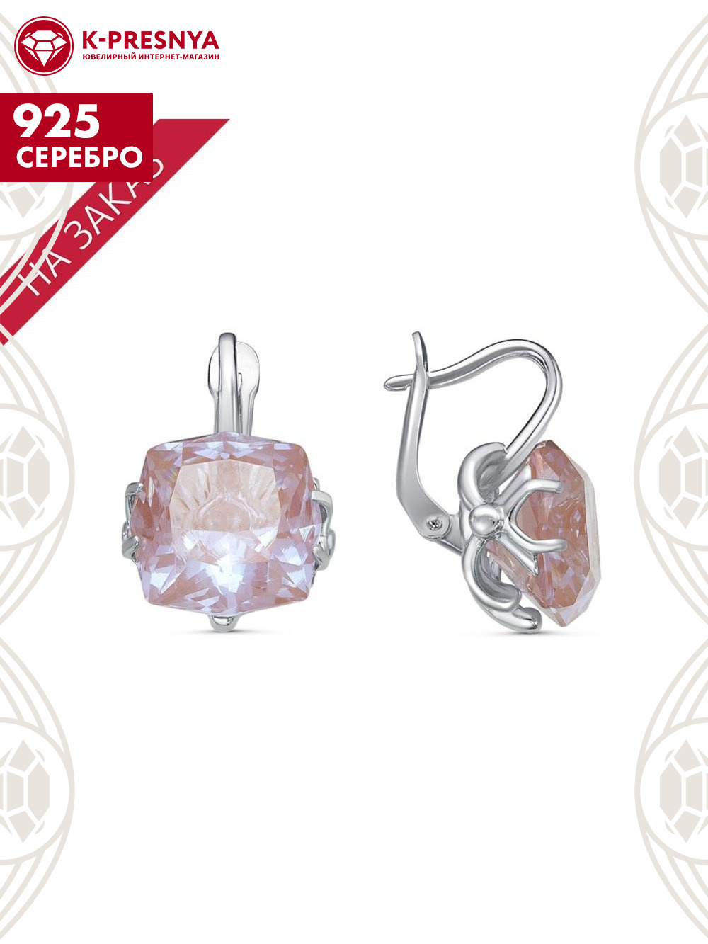 Серьги серебро 925 пробы, покрытие - родирование, вставка - ситалл собственной огранки