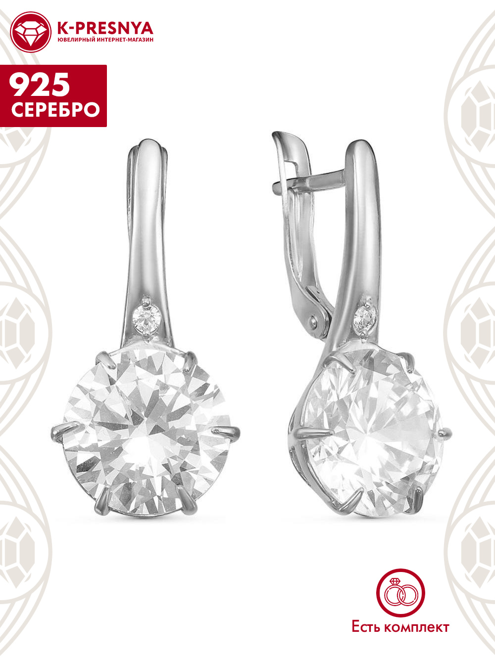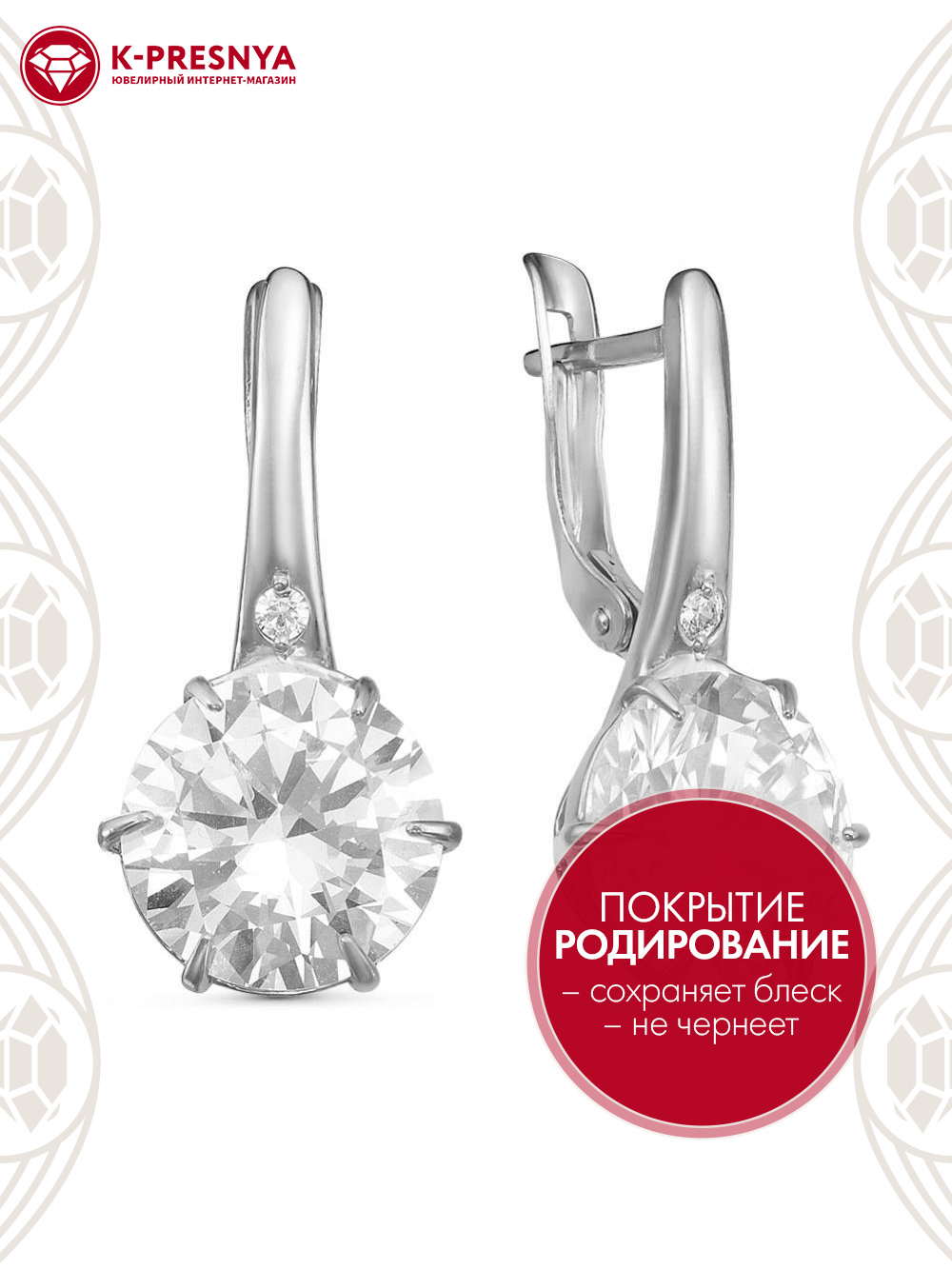 Серьги серебро 925 пробы, покрытие - родирование, вставка - фианит (недрагоценный камень)