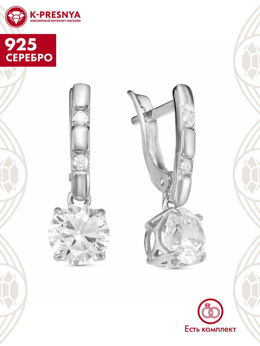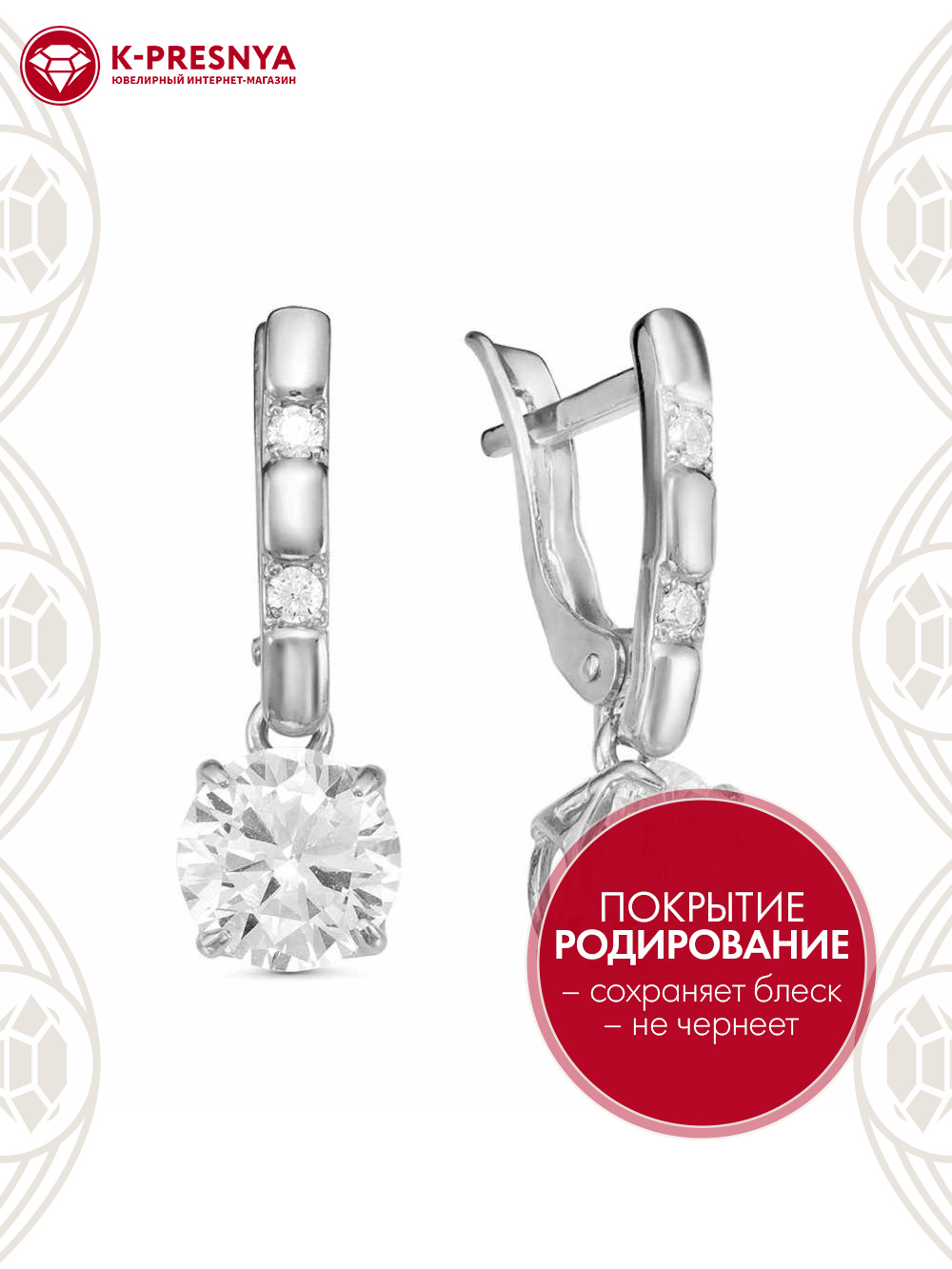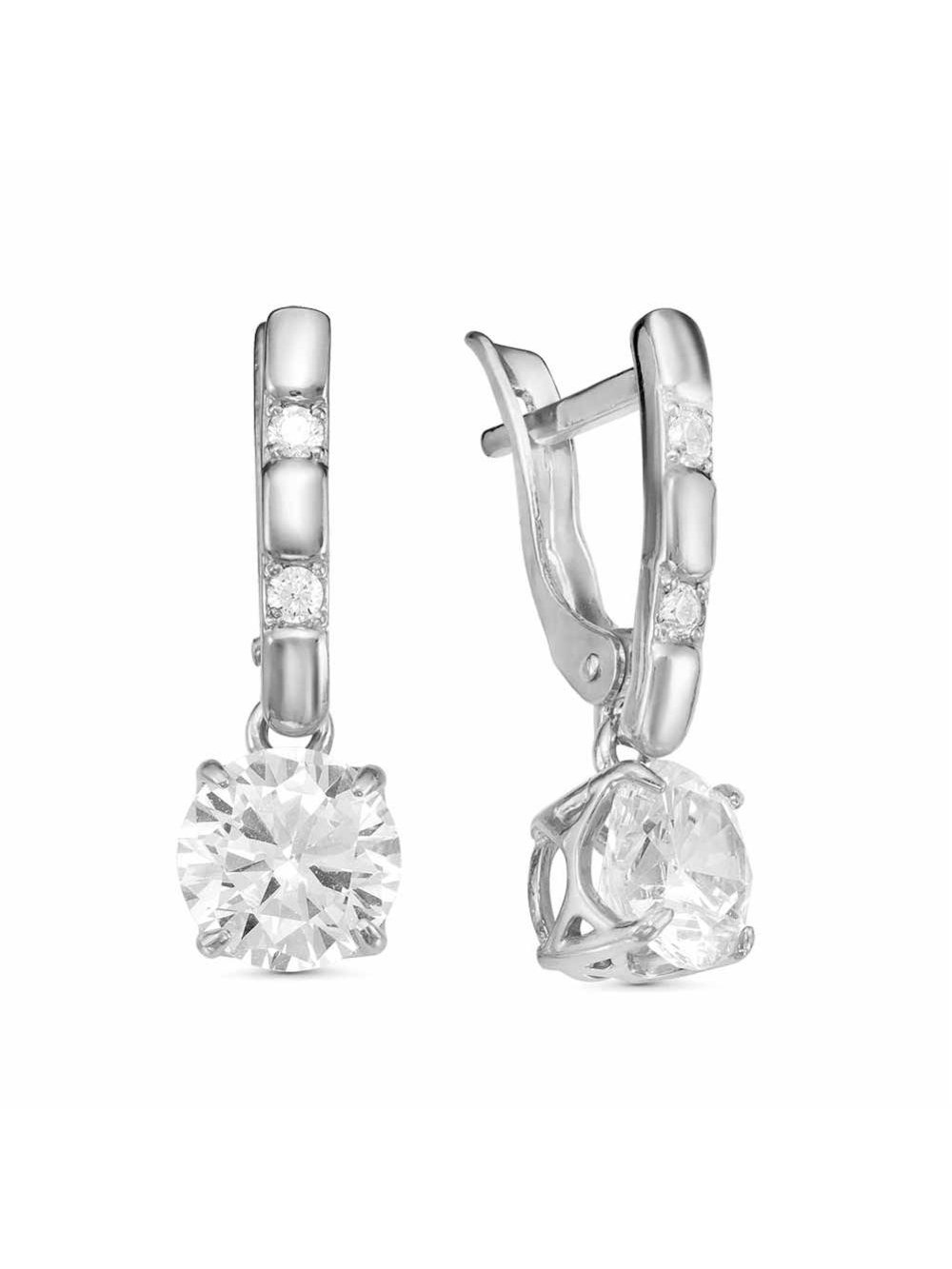 Серьги серебро 925 пробы, покрытие - родирование, вставка - фианит (недрагоценный камень)