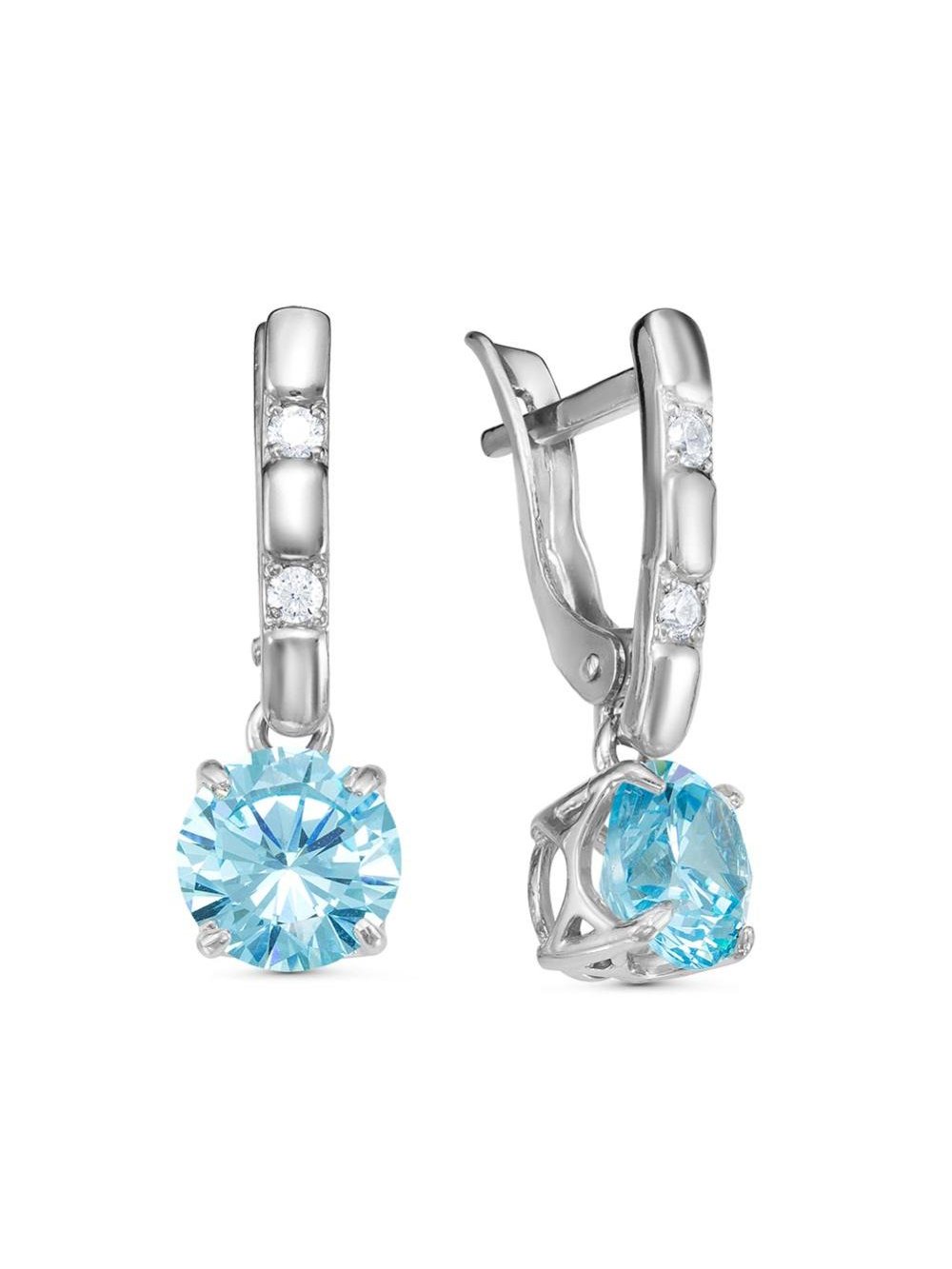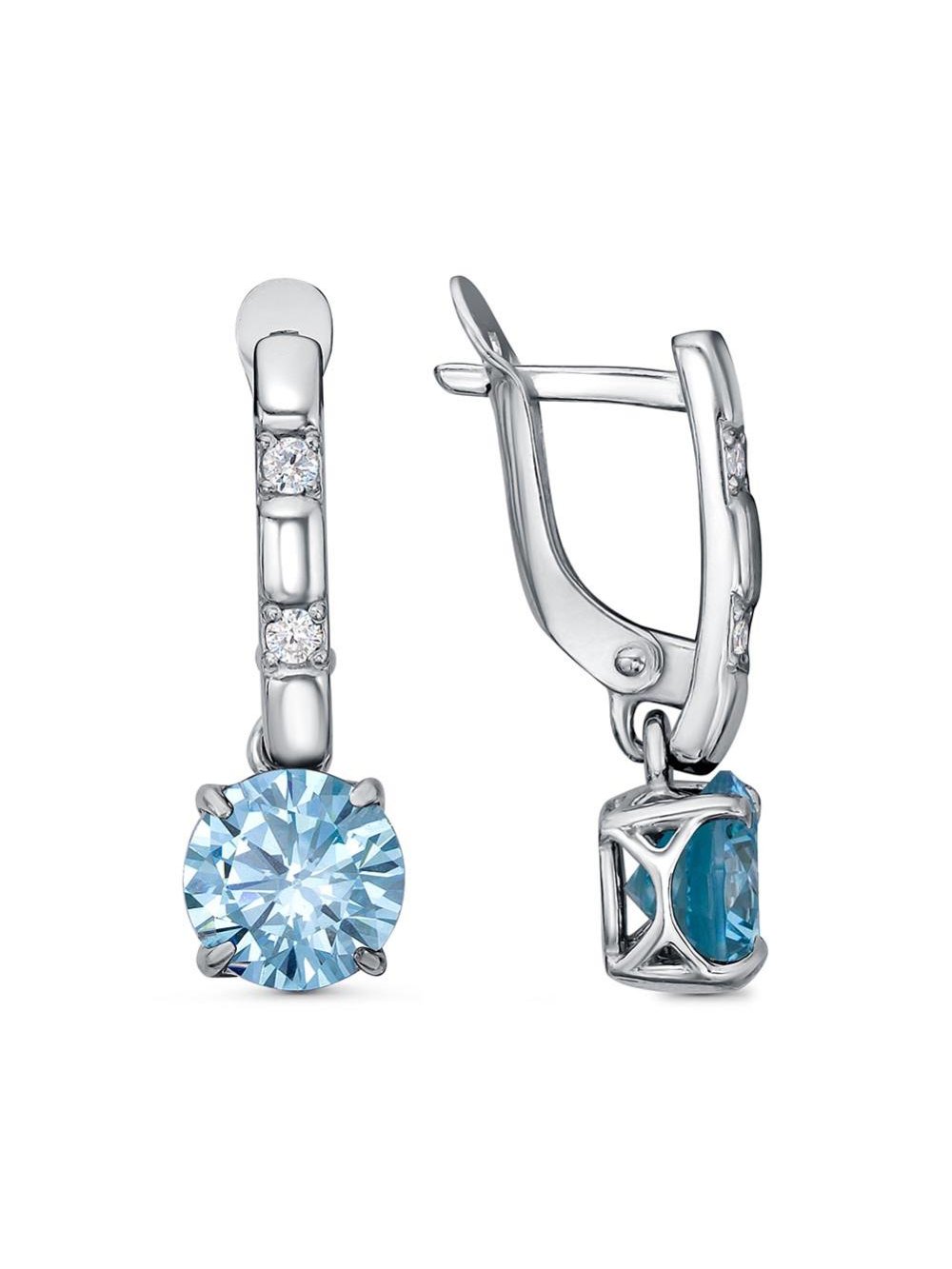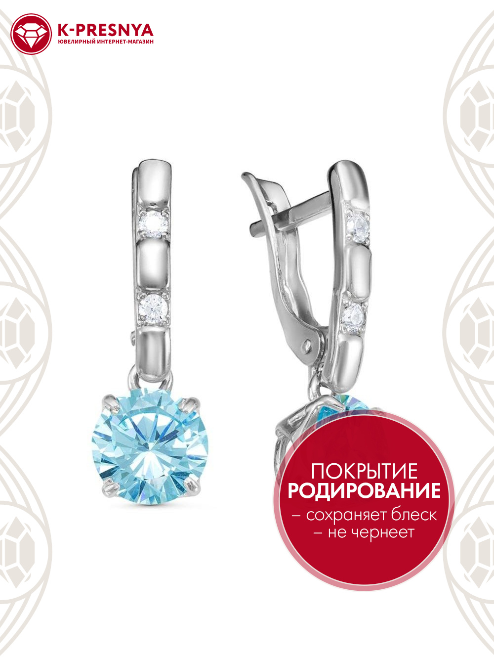 Серьги серебро 925 пробы, покрытие - родирование, вставка - фианит (недрагоценный камень)