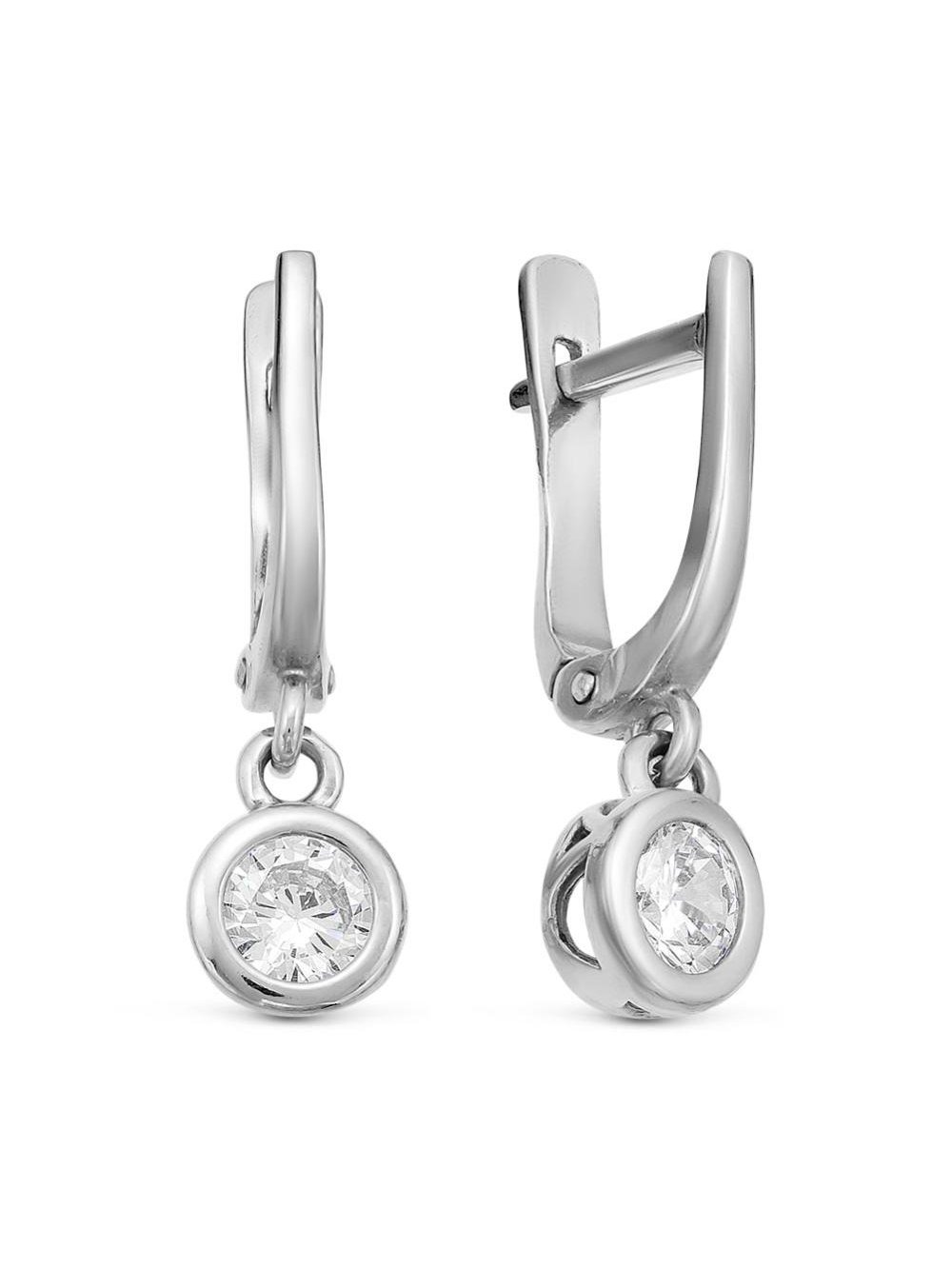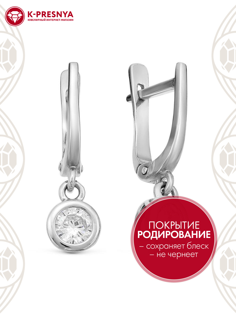 Серьги серебро 925 пробы, покрытие - родирование, вставка - фианит (недрагоценный камень)