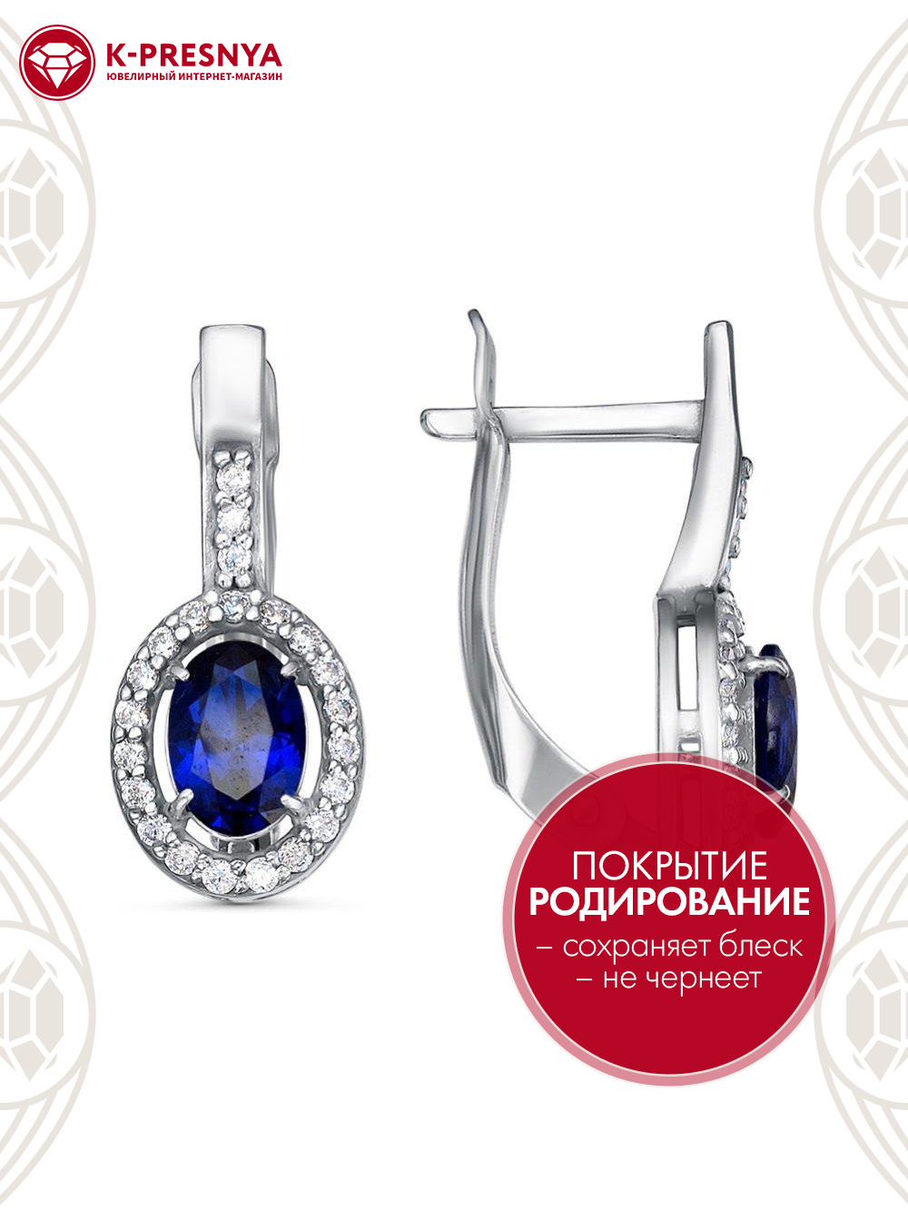 Серьги серебро 925 пробы, покрытие - родирование, вставка - искусственная шпинель, фианит (недрагоценный камень)