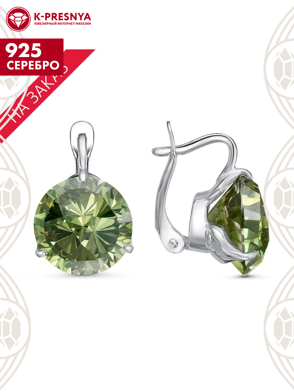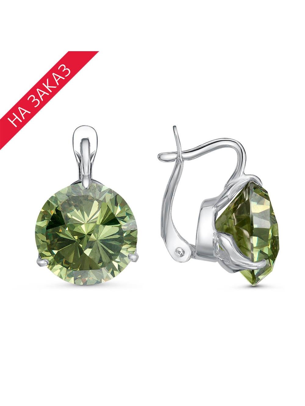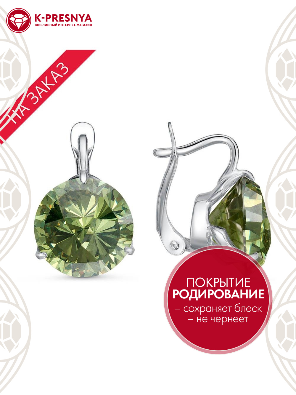 Серьги серебро 925 пробы, покрытие - родирование, вставка - фианит собственной огранки (недрагоценный камень)