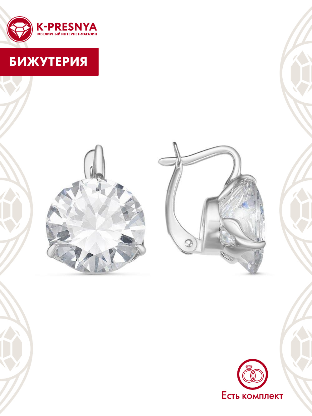 Серьги бижутерия, покрытие - серебрение, вставка - фианит (недрагоценный камень)