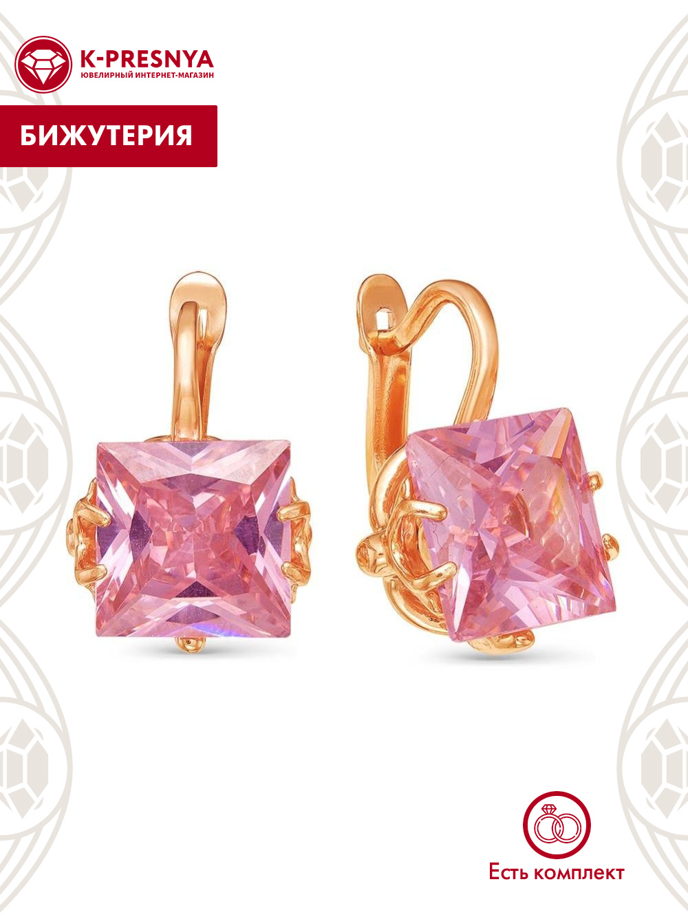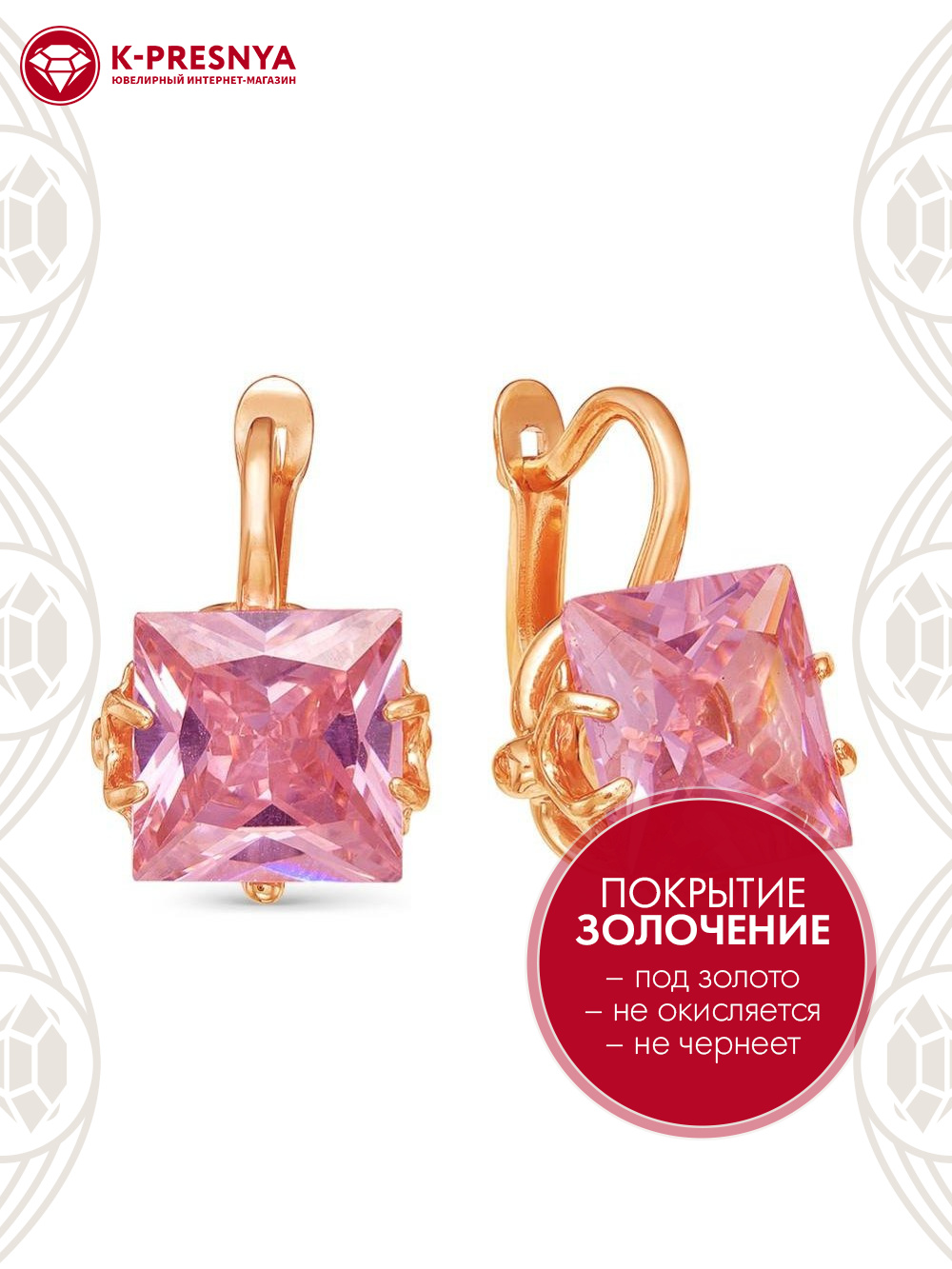 Серьги бижутерия, покрытие - золочение, вставка - фианит (недрагоценный камень)