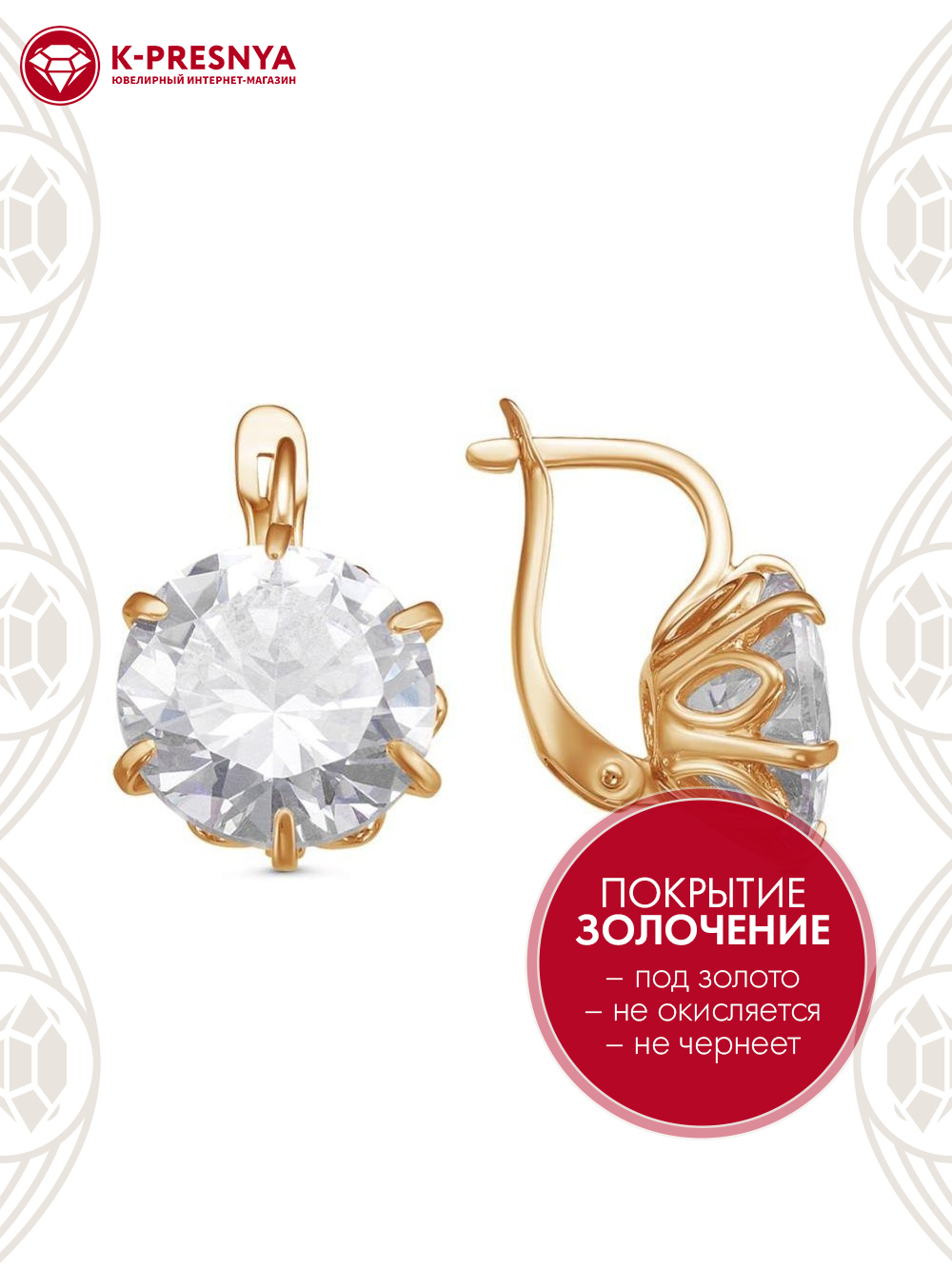 Серьги бижутерия, покрытие - золочение, вставка - фианит (недрагоценный камень)