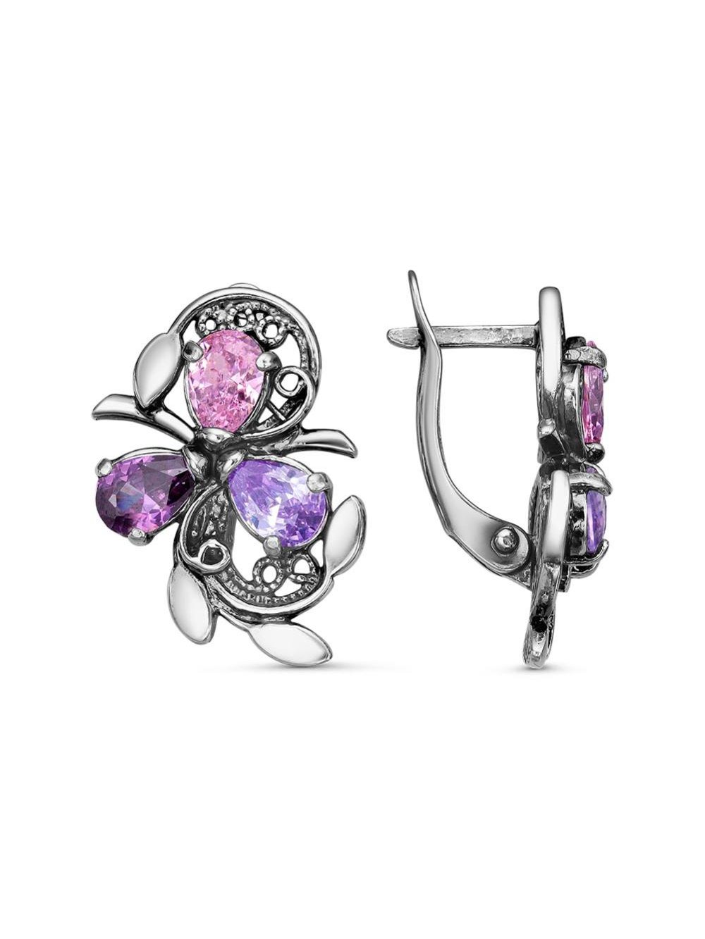 Серьги бижутерия, покрытие - серебрение с оксидированием, вставка - фианит (недрагоценный камень)