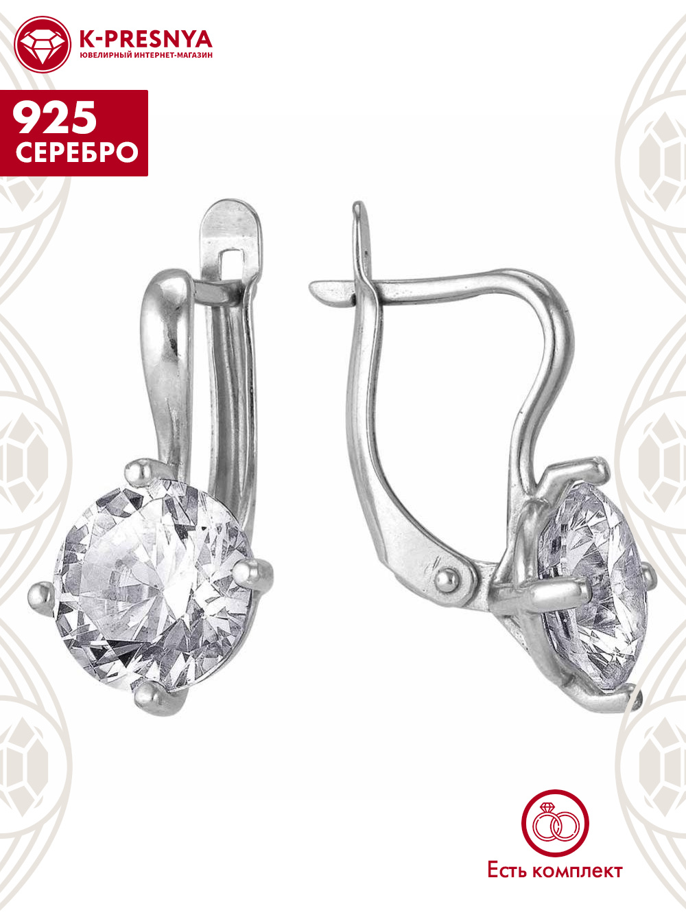 Серьги серебро 925 пробы, без покрытия, вставка - фианит (недрагоценный камень)