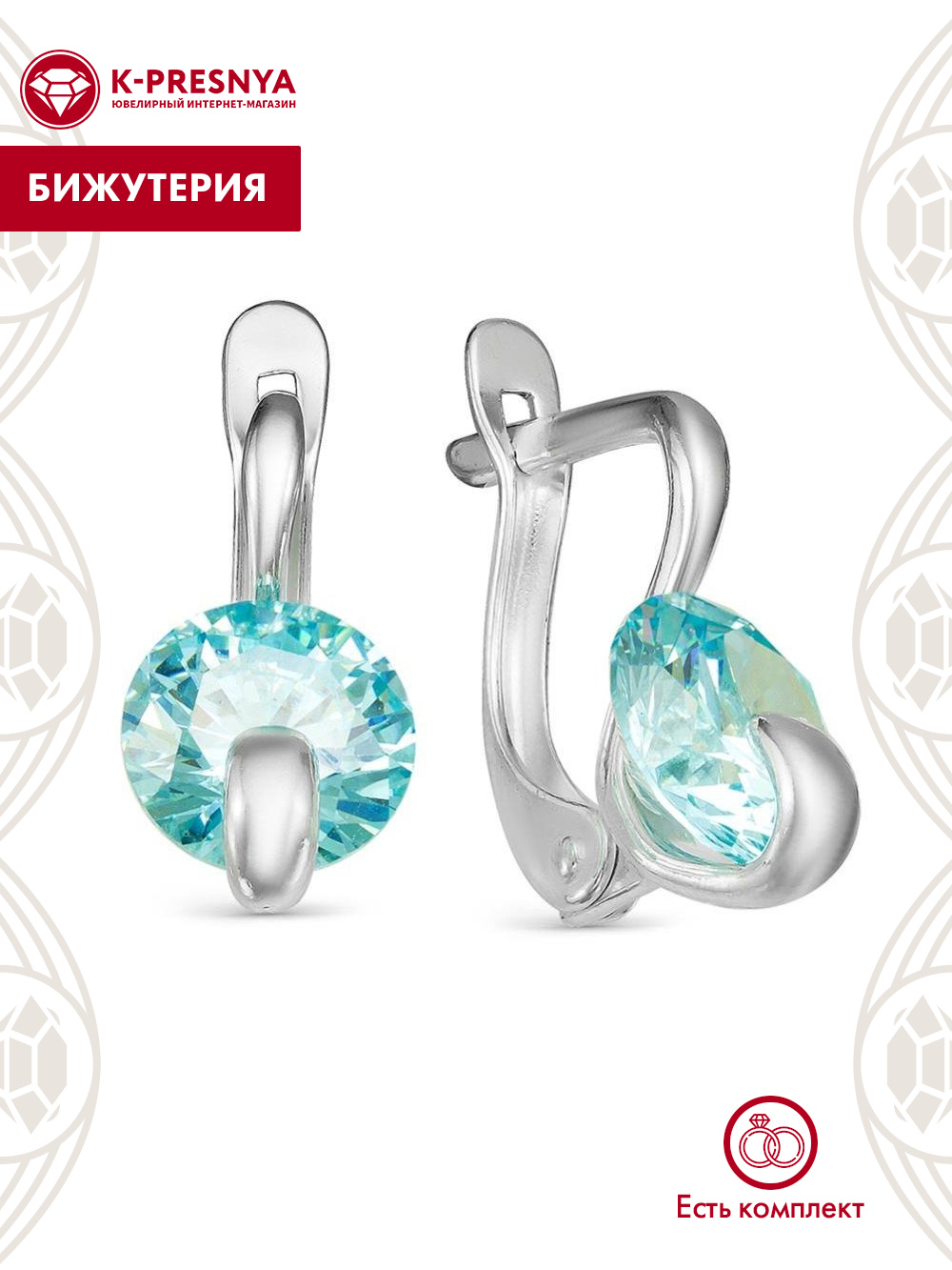 Серьги бижутерия, покрытие - серебрение, вставка - фианит (недрагоценный камень)