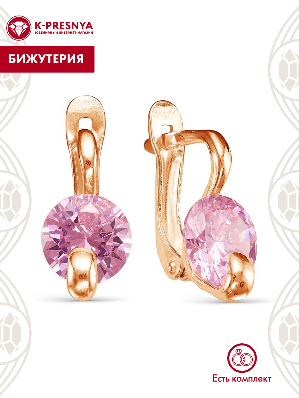 Серьги бижутерия, покрытие - золочение, вставка - фианит (недрагоценный камень)