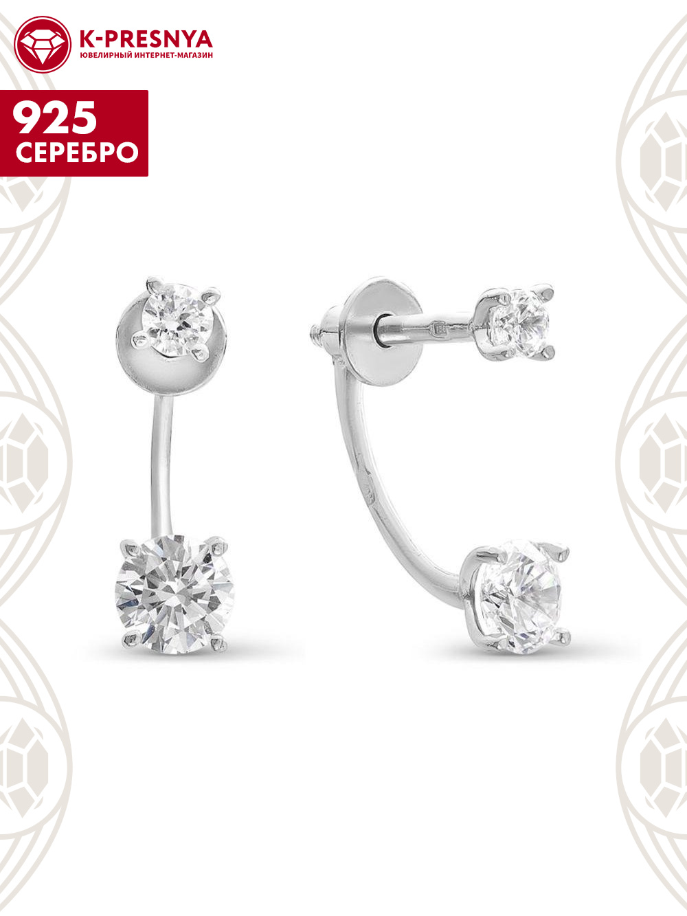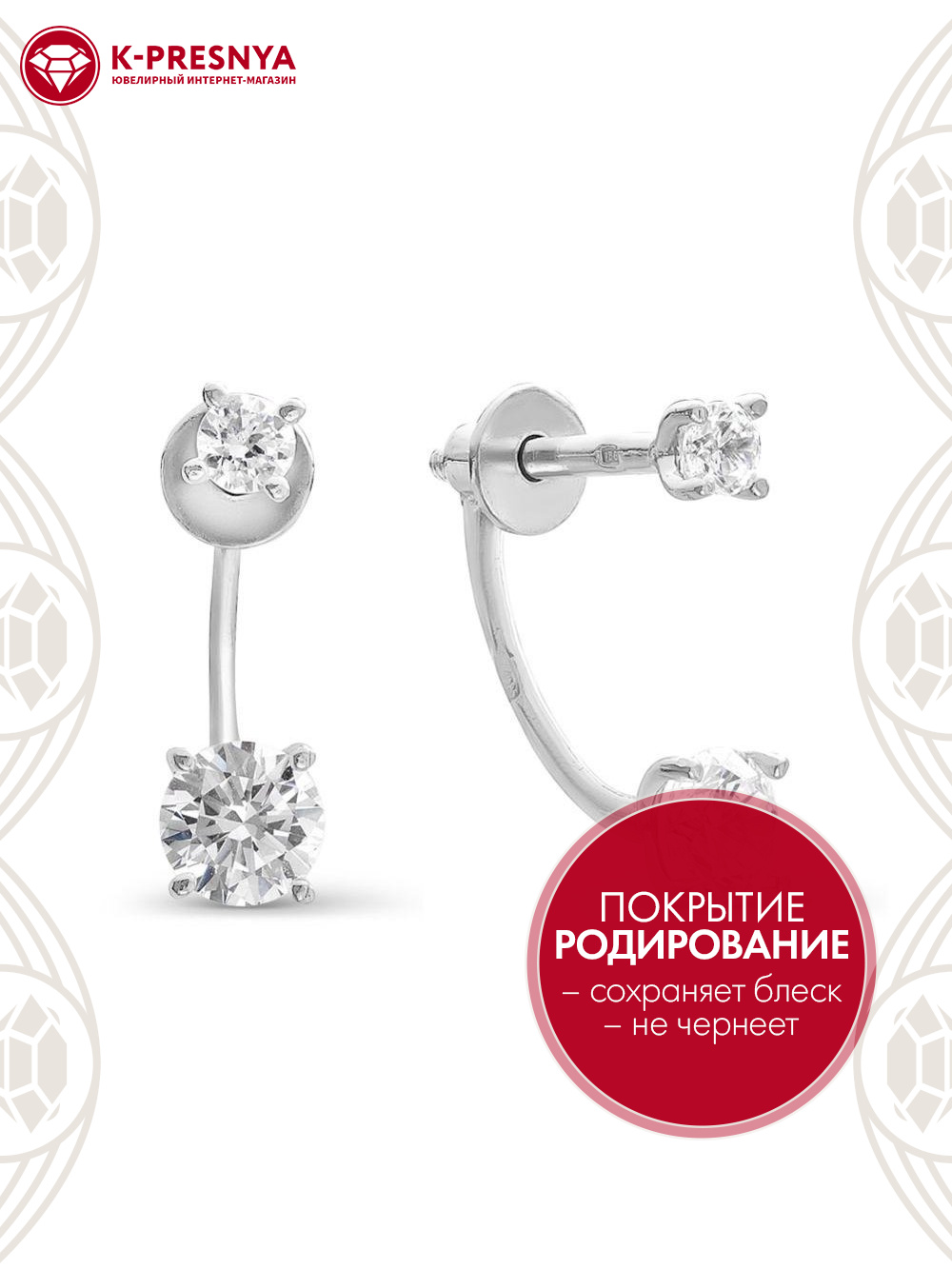 Серьги серебро 925 пробы, покрытие - родирование, вставка - фианит (недрагоценный камень)