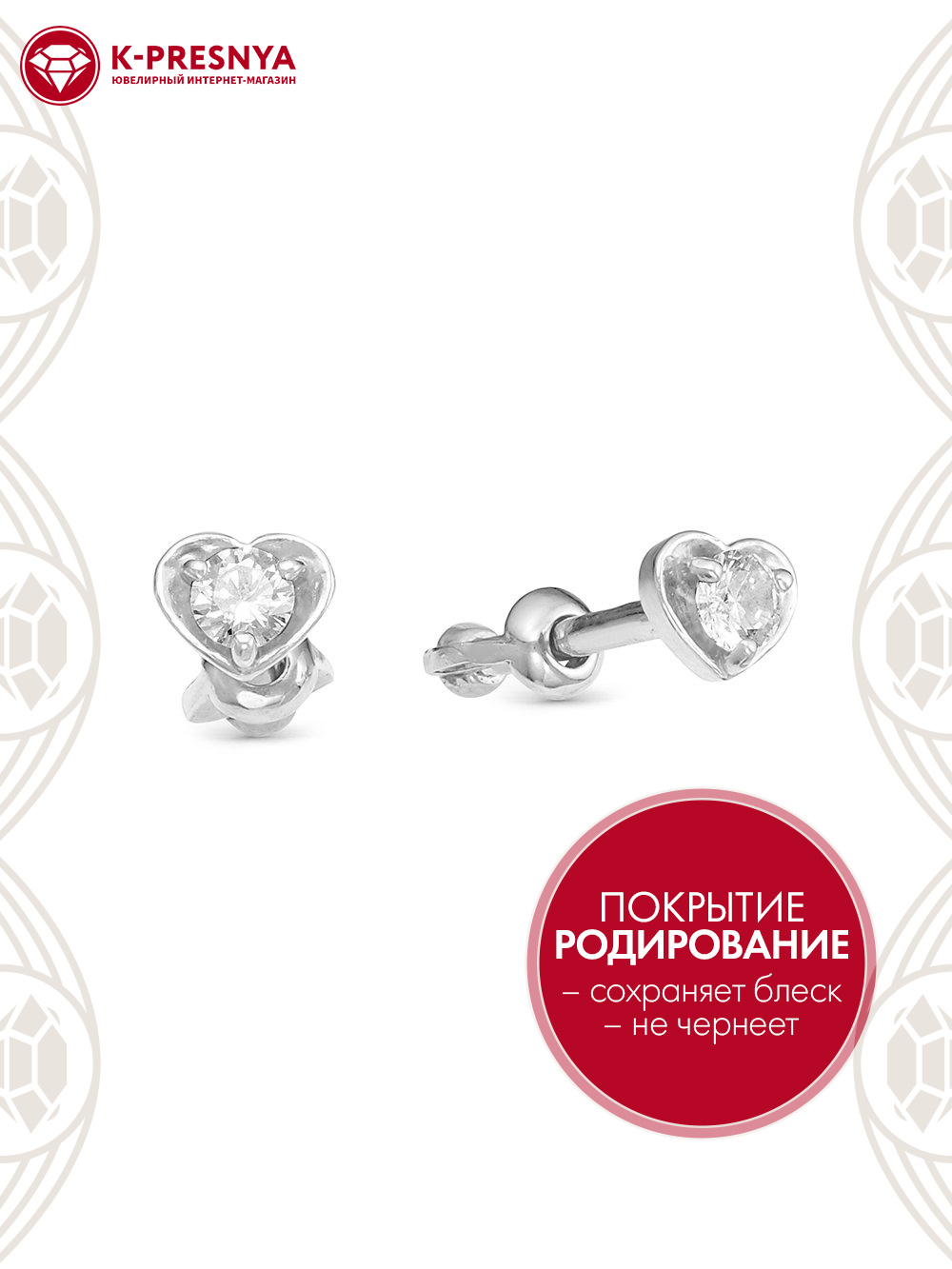 Серьги серебро 925 пробы, покрытие - родирование, вставка - фианит (недрагоценный камень)