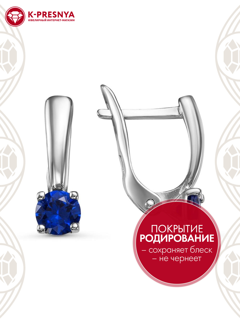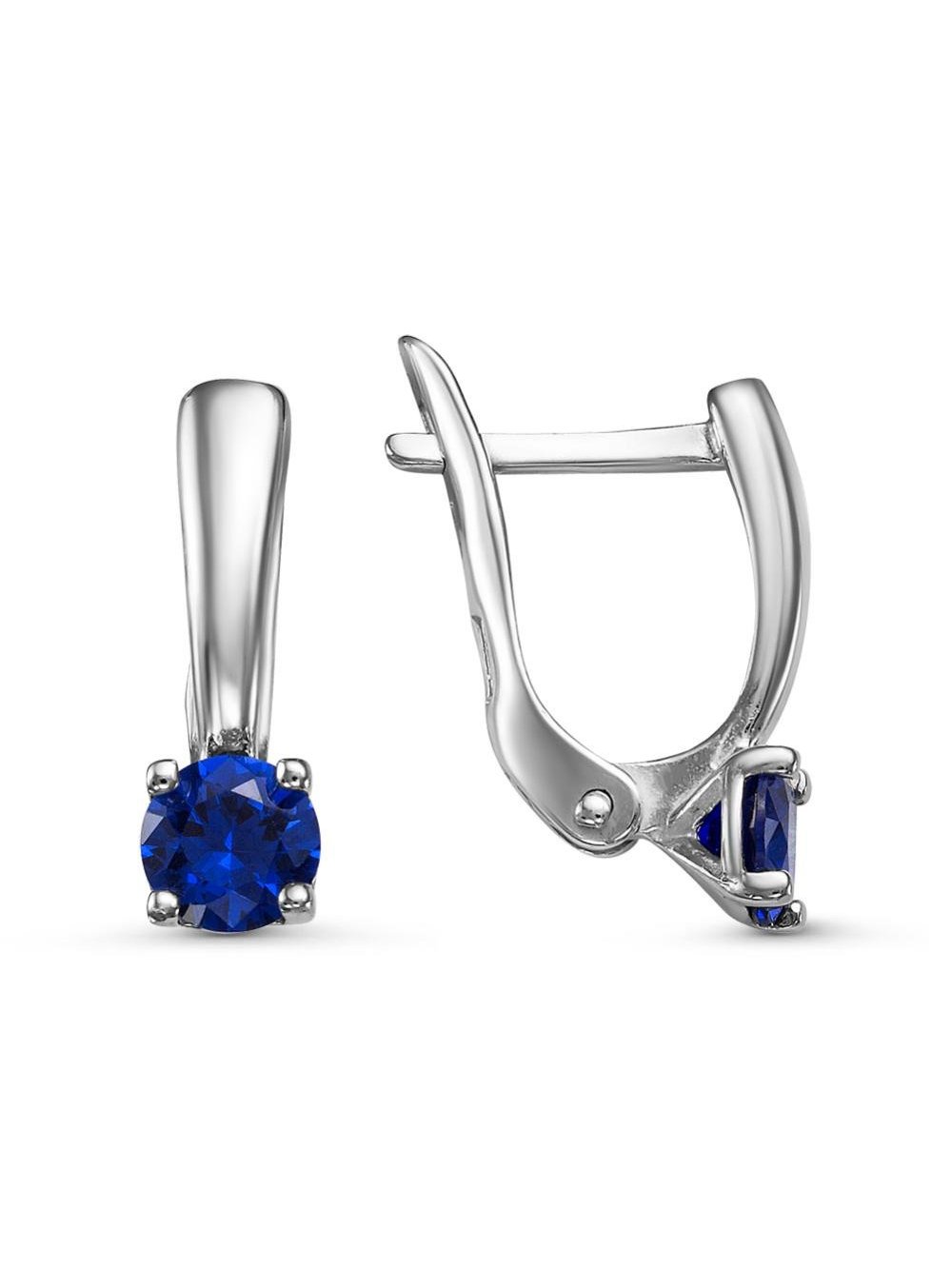 Серьги серебро 925 пробы, покрытие - родирование, вставка - искусственная шпинель