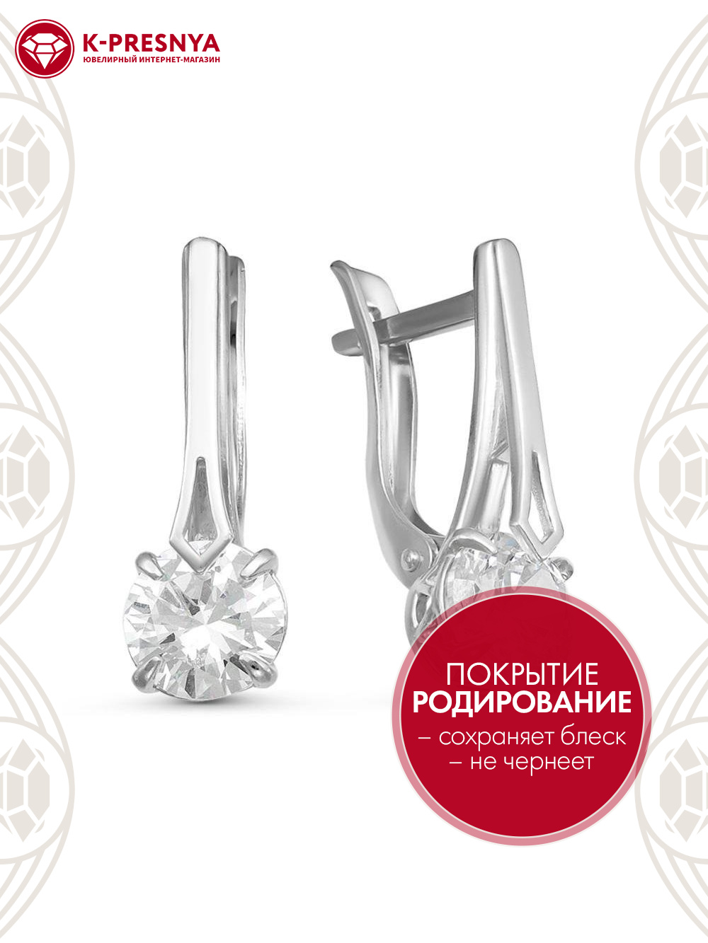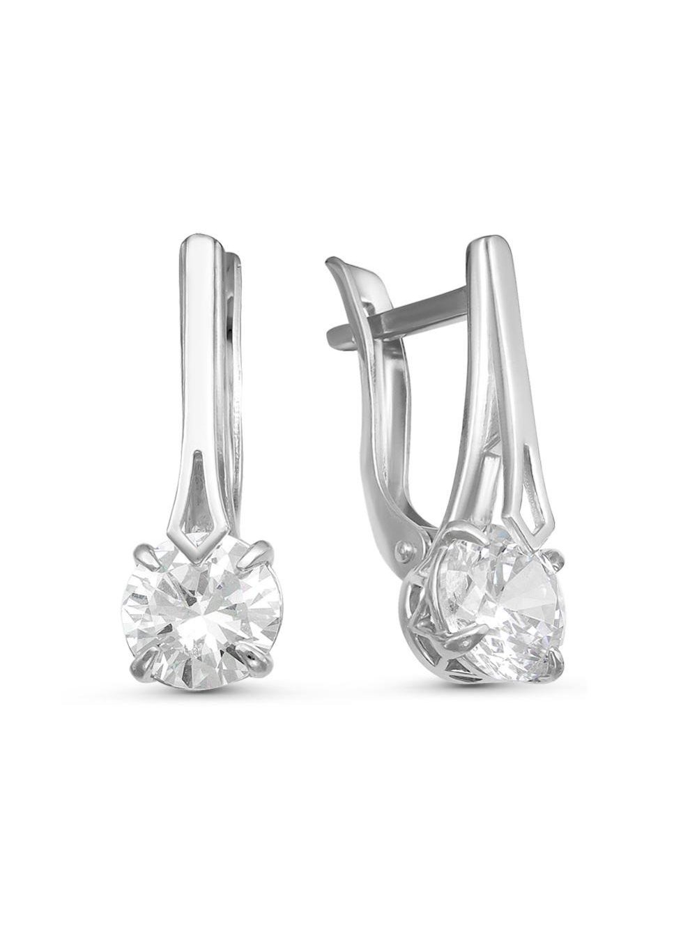 Серьги серебро 925 пробы, покрытие - родирование, вставка - фианит (недрагоценный камень)