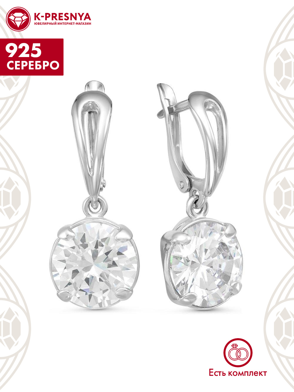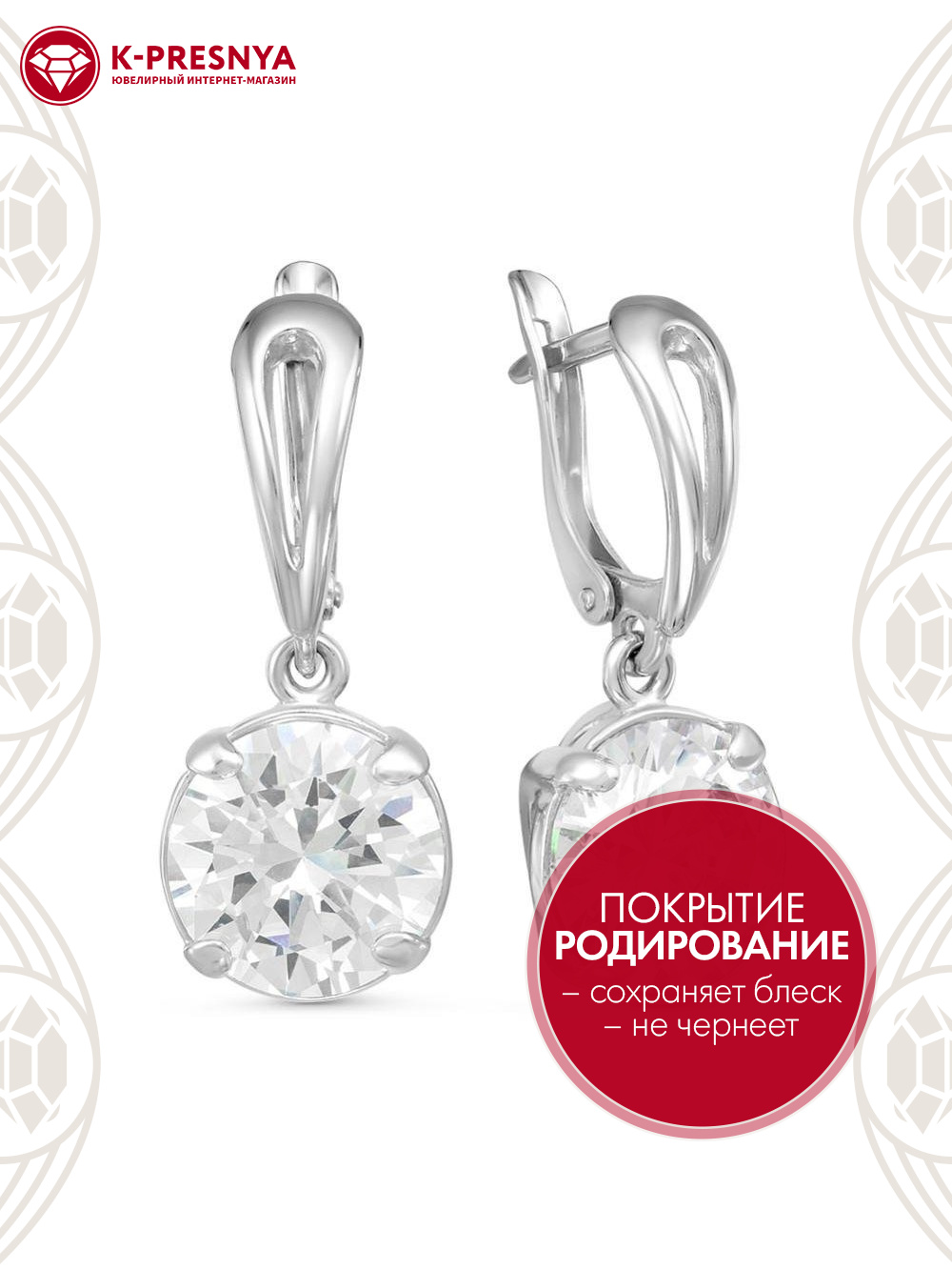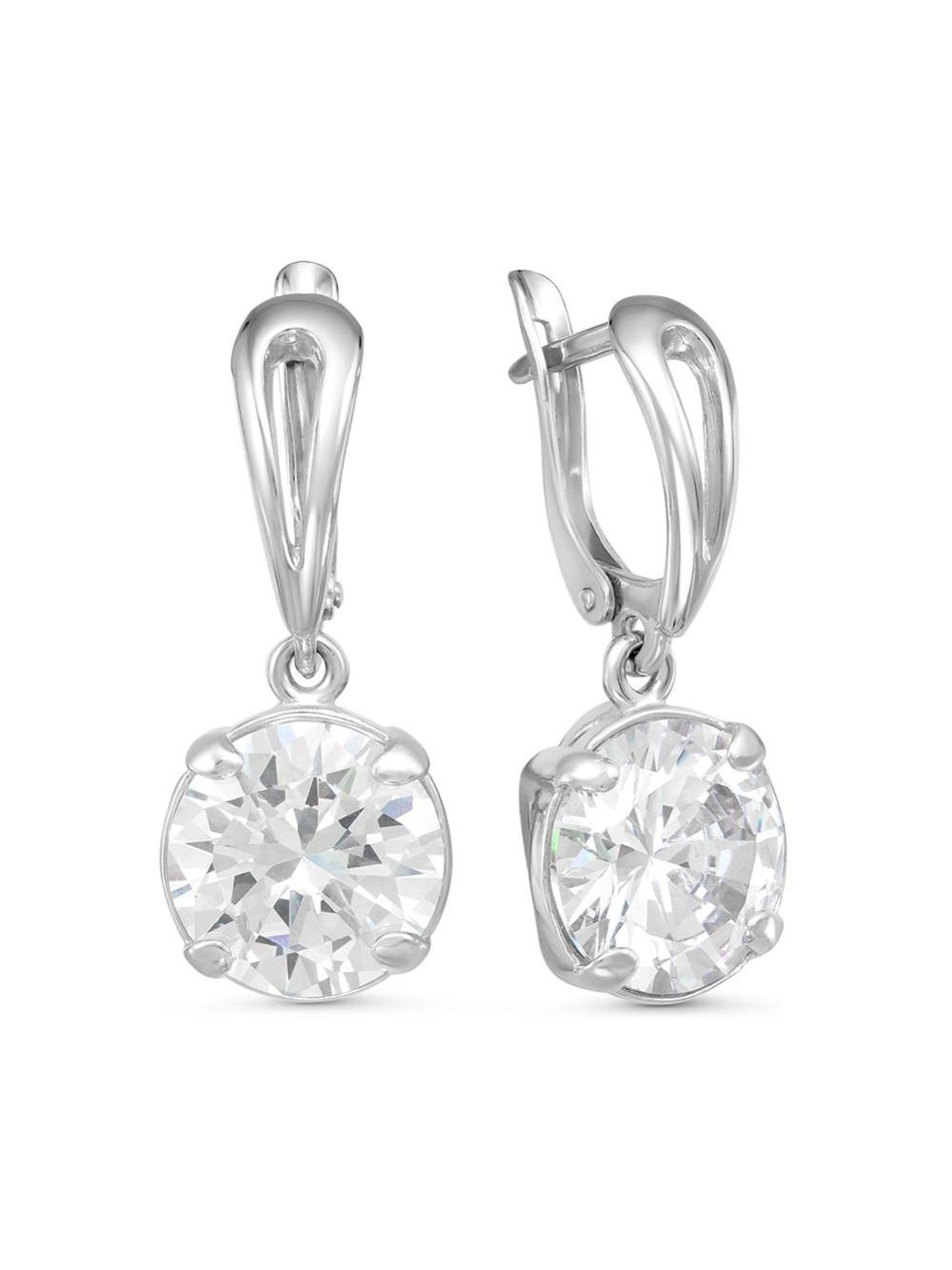 Серьги серебро 925 пробы, покрытие - родирование, вставка - фианит (недрагоценный камень)