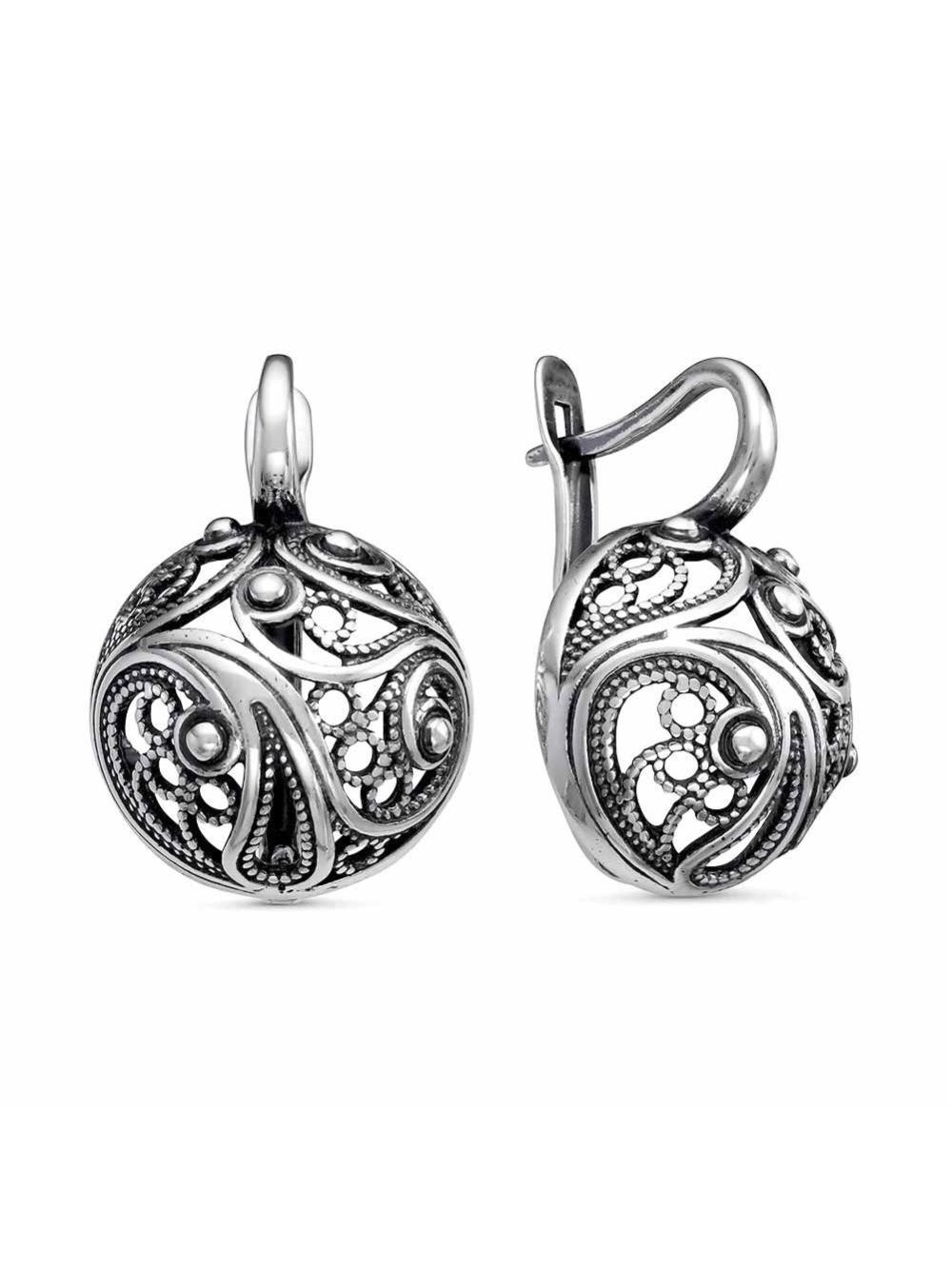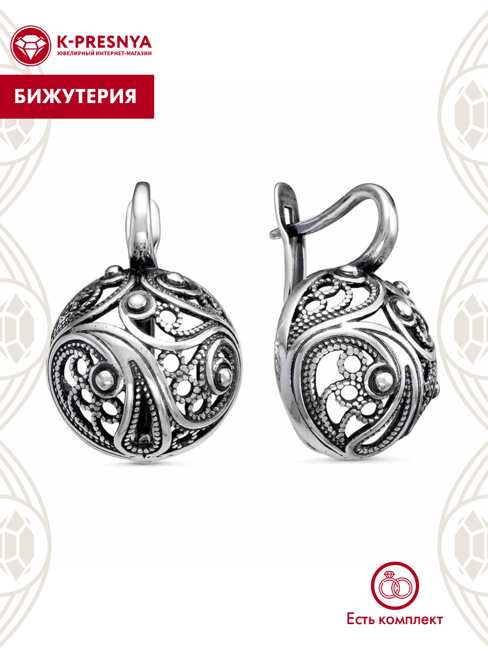 Серьги бижутерия, покрытие - серебрение с оксидированием, без вставок