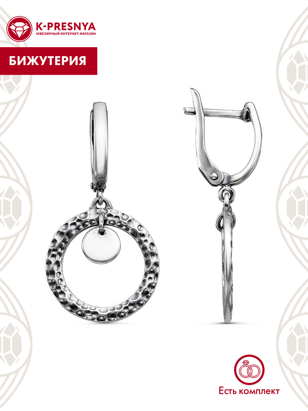 Серьги бижутерия, покрытие - серебрение с оксидированием, без вставок