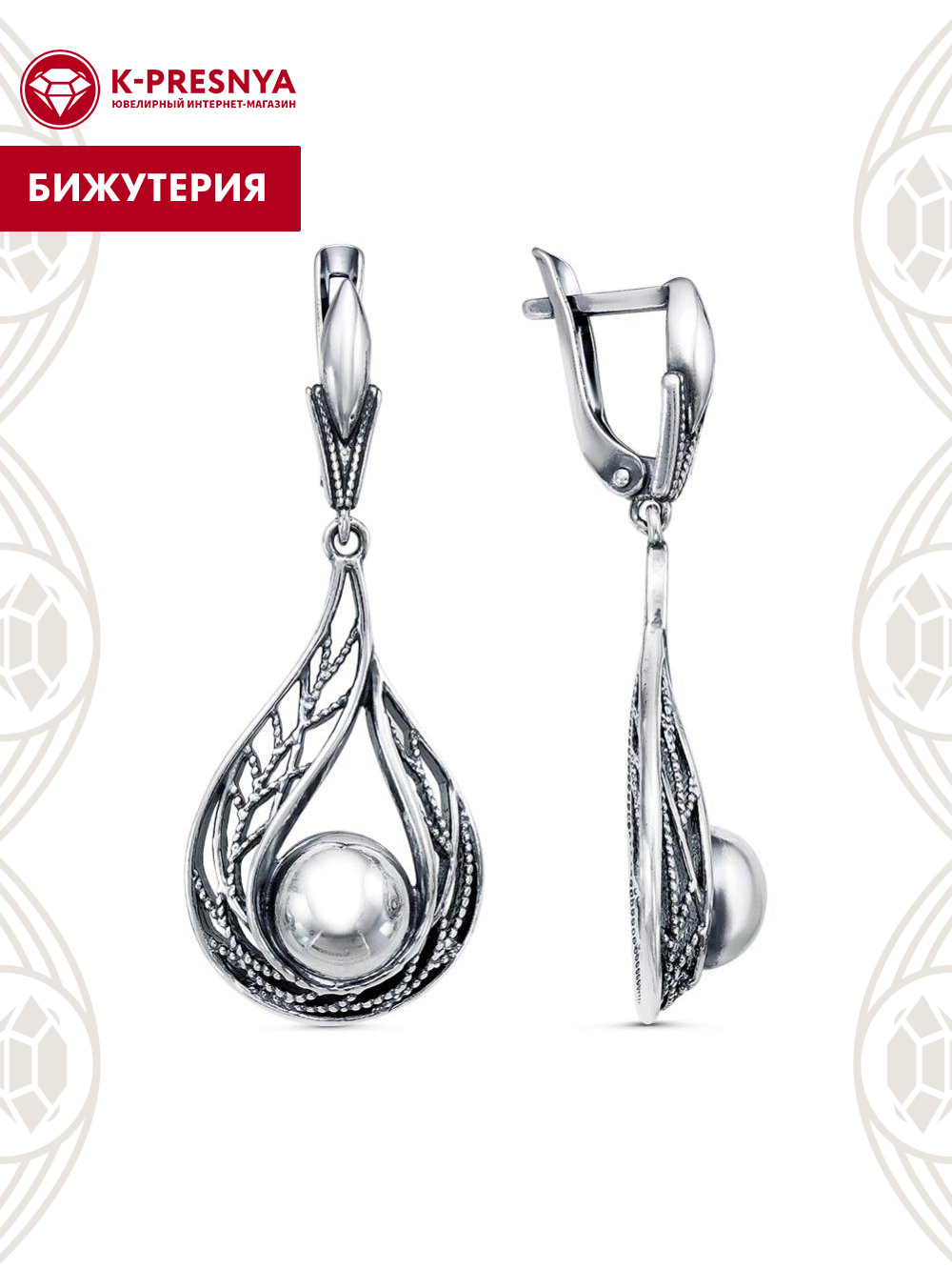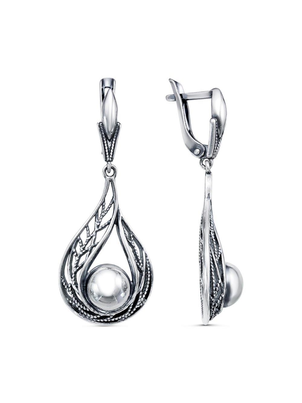 Серьги бижутерия, покрытие - серебрение с оксидированием, без вставок
