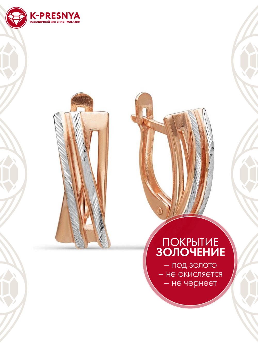 Серьги бижутерия, покрытие - золочение, отделка - алмазная грань, без вставок